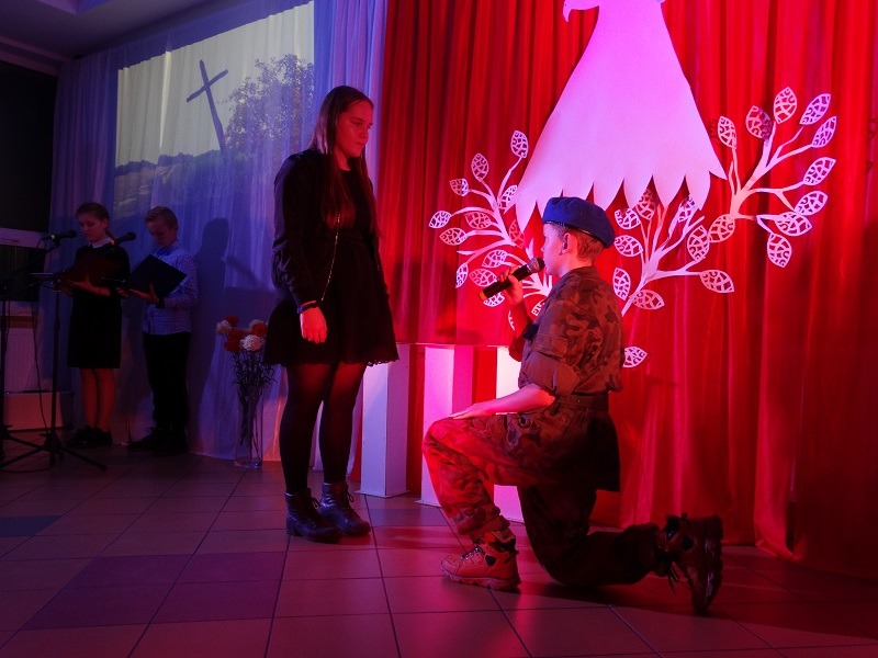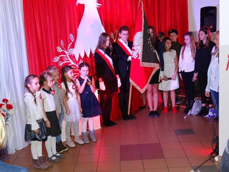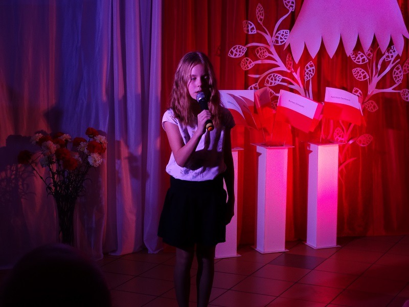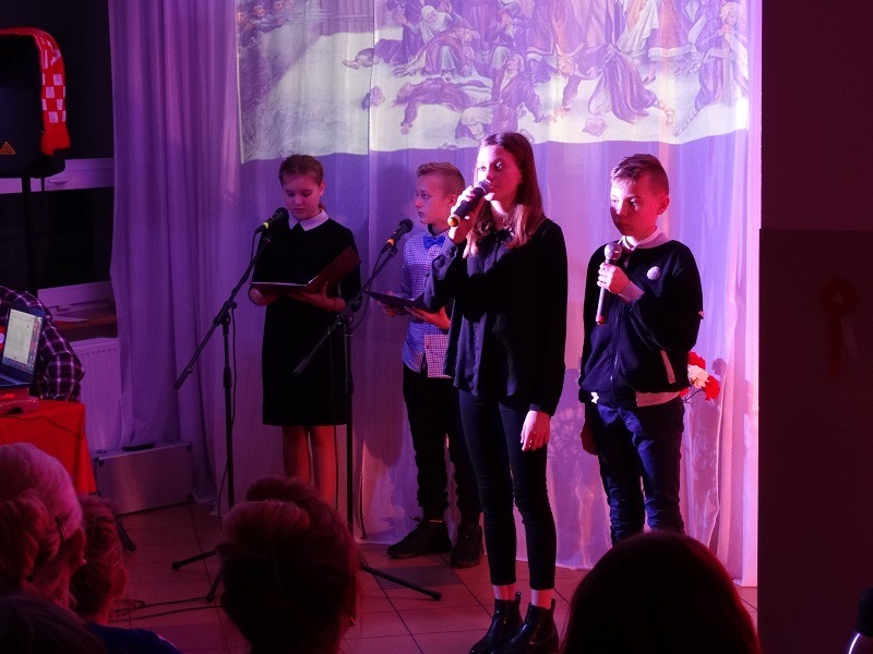 Z okazji 101. rocznicy odzyskania przez Polskę niepodległości 14.11.2019 r. odbyła się w naszej szkole wieczornica patriotyczna. Przybyłych gości przywitała pani Dyrektor Mariola Łagoda - Ellwart. Uczniowie przedstawili program artystyczny, który wzruszył wielu gości.