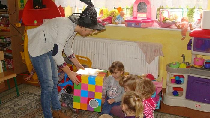 Wychowawczynie p. Anna Żółtowska oraz p. Maria Renka zabrały swoich wychowanków do świata magii i czarów. Dzieci dowiedziały się co je czeka w niedalekiej przyszłości, kim zostaną kiedy dorosną, które z dzieci pierwsze weźmie ślub i jak będzie miał lub miała na imię ich sympatia. Ten magiczny dzień wróżb i czarów bardzo spodobał się dzieciom. Tradycyjnie odbyła się również krótka zabawa przy dźwiękach wesołej muzyki.