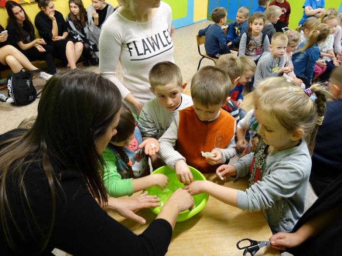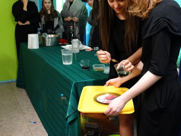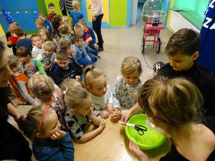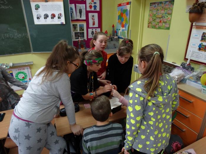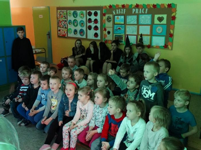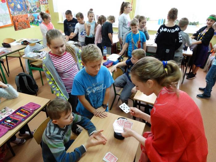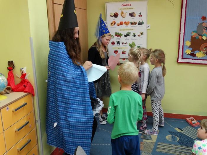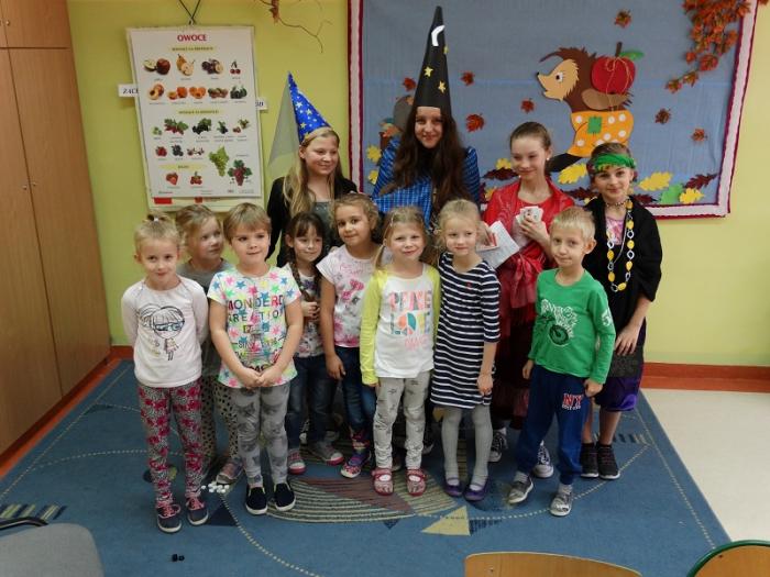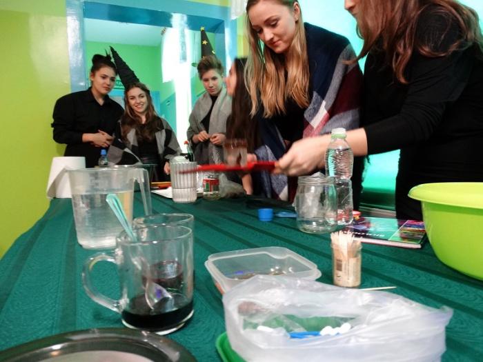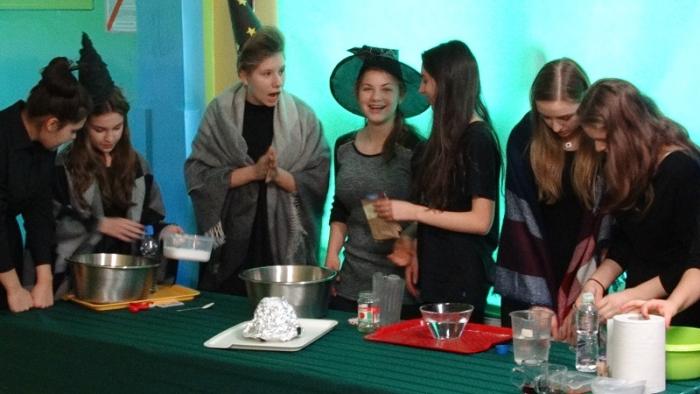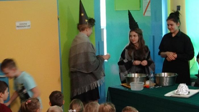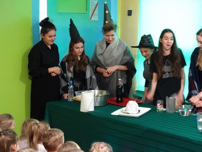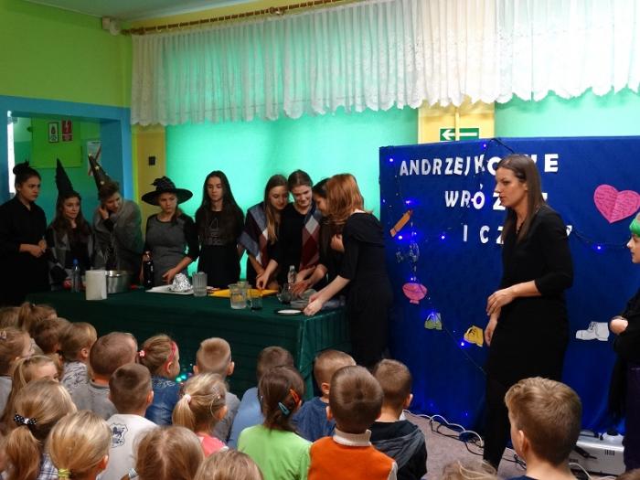 Szkolnego Koła Wolontariatu pod okiem nauczycieli przygotowali dla najmłodszych kolegów i koleżanek zjawiskowe doświadczenia chemiczne i wróżby andrzejkowe. Dobre wróżki, przy pomocy magicznych pyłków, smoczych łez oraz czarów, przemieniały składniki w zaskakujące i niesamowite rzeczy. Czarodziejki odwiedziły uczniów w ich klasach po to aby każdemu przepowiedzieć przyszłość Nie zabrakło aplauzu oraz zachwytu ze strony uczniów oraz wspaniałej zabawy!!!