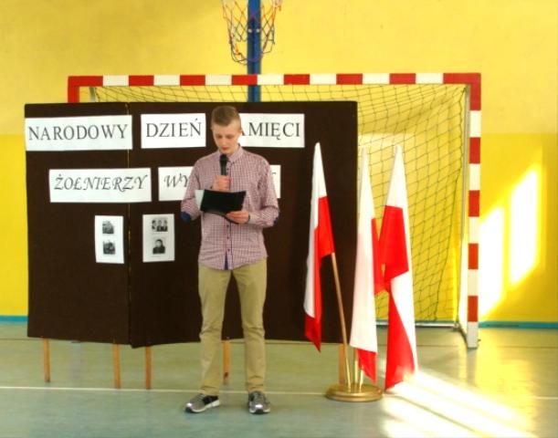 Z okazji Narodowego Dnia Pamięci Żołnierzy Wyklętych uczniowie kl. IIIgimnazjum W. Ulenberg i O. Leszczyński pod opieką nauczyciela historii E. Chmielewskiej przygotowali okolicznościowy apel oraz wystawę z informacjami o Żołnierzach Wyklętych.