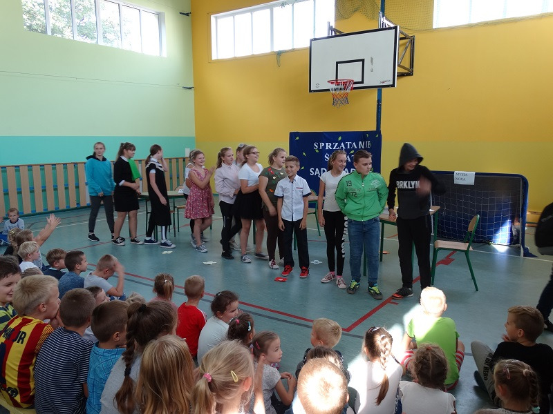 W ten sposób uczczono akcję "Sprzątania Świata". Uczniów do występów przygotowała p. Beata Strąk.