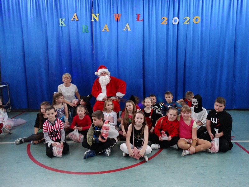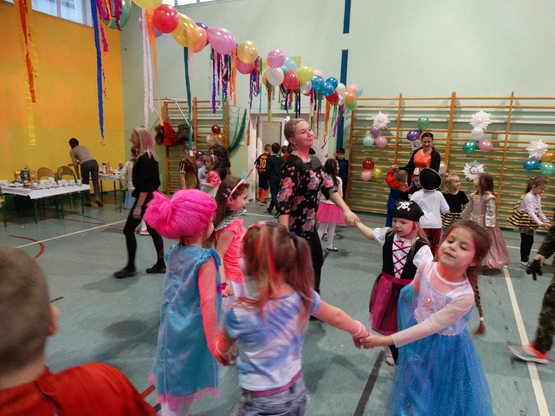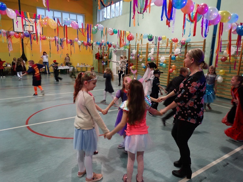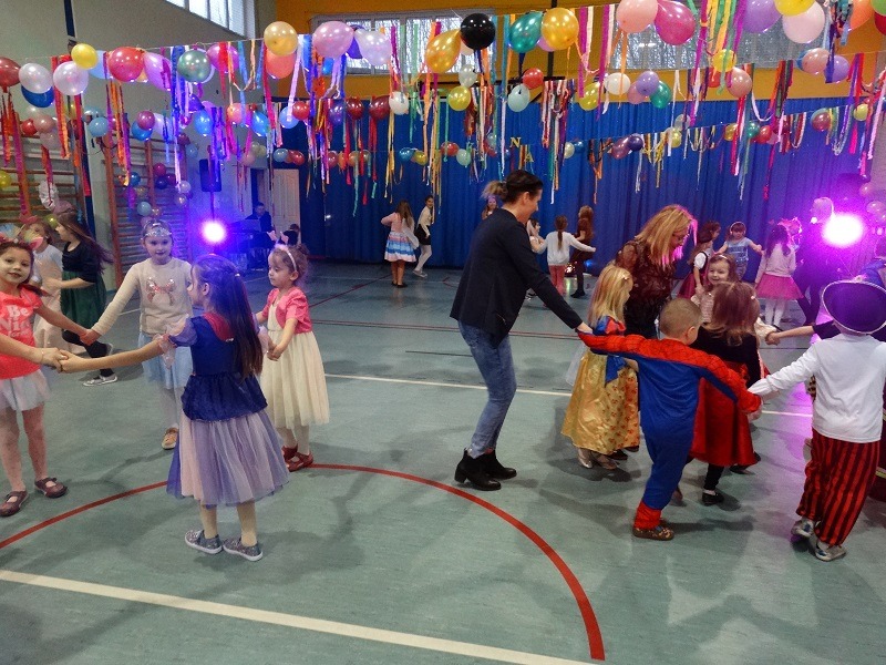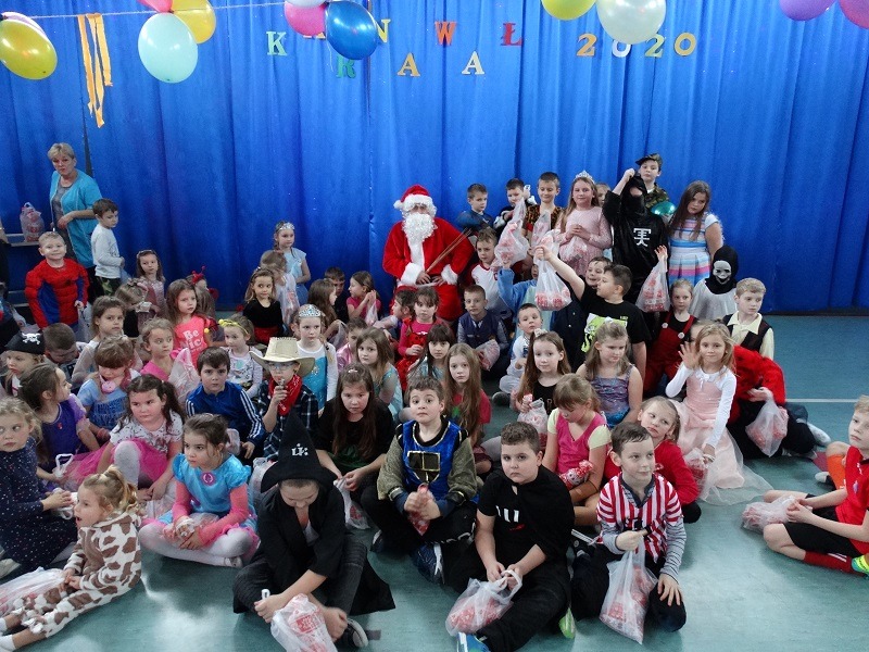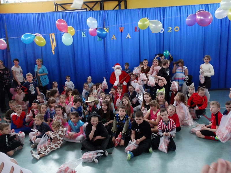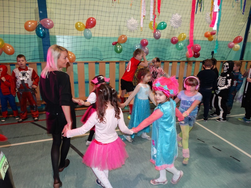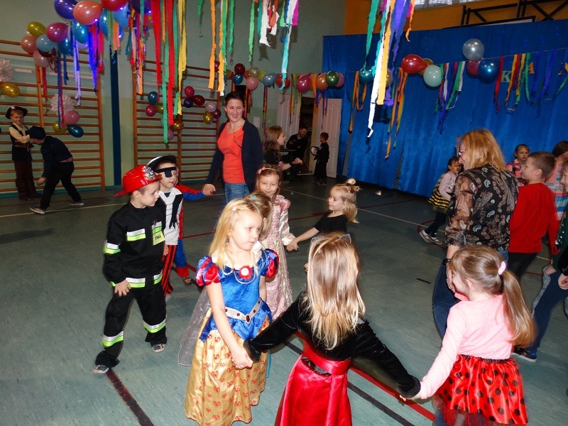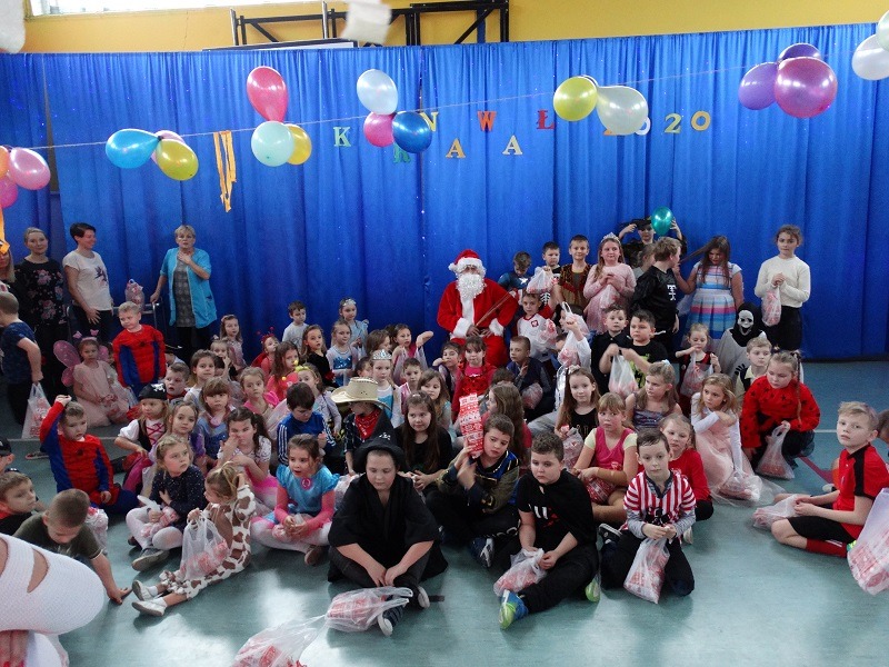 Tradycyjnie każde dziecko przebrało się za postać z bajki lub ulubionego bohatera. W rytmie światowych hitów uczniowie pląsali, śpiewali i świetnie się bawili. Na zakończenie zabawy dzieci odwiedził święty Mikołaj, który wręczył im słodkie upominki.