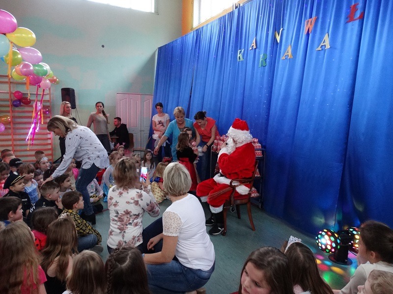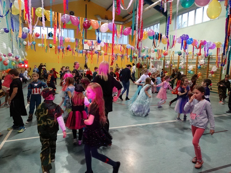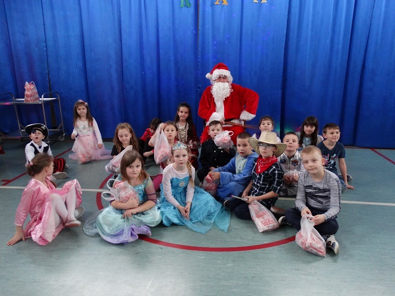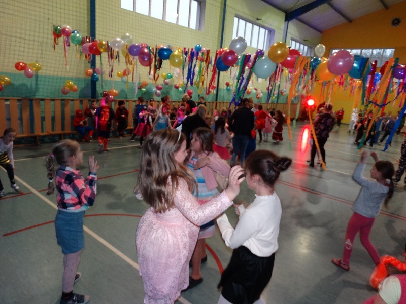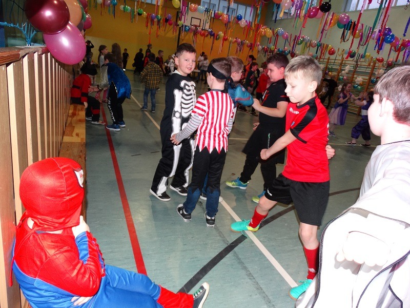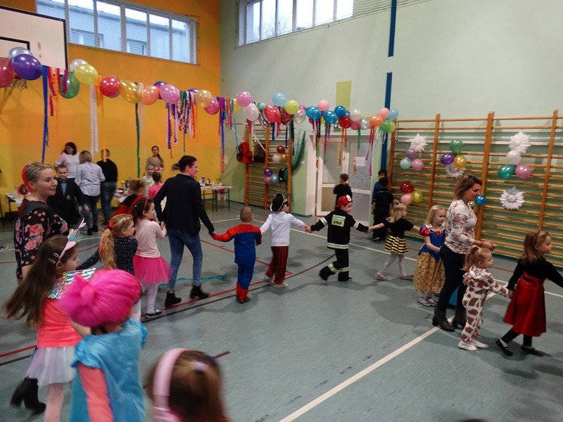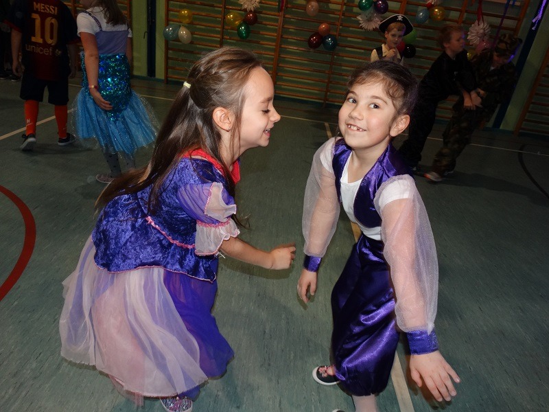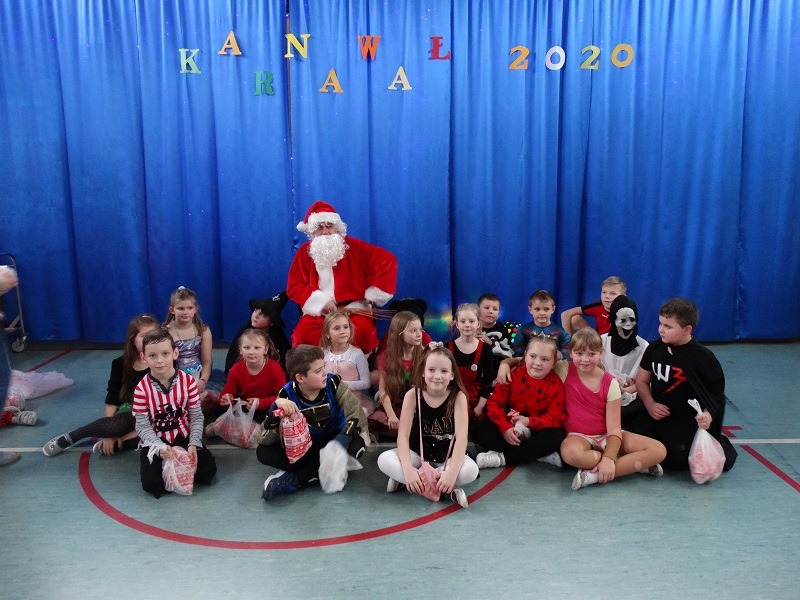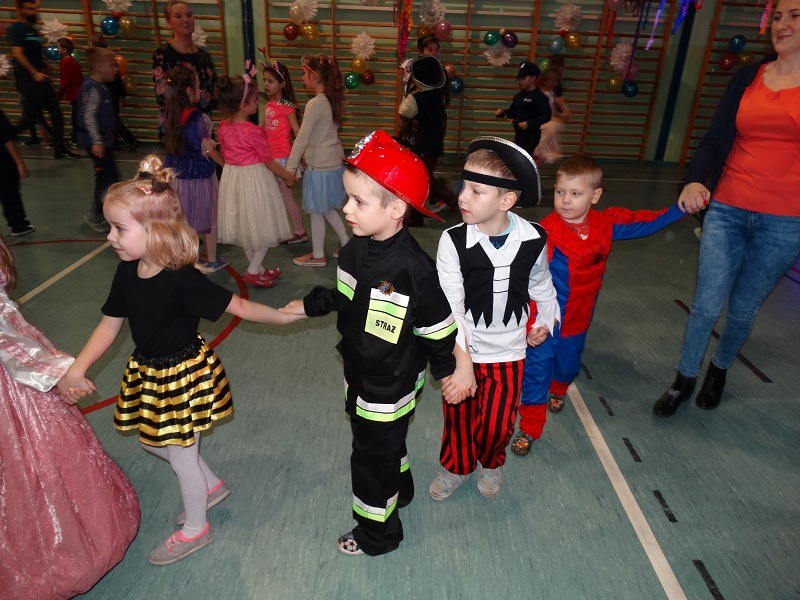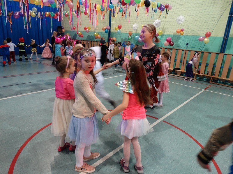 Tradycyjnie każde dziecko przebrało się za postać z bajki lub ulubionego bohatera. W rytmie światowych hitów uczniowie pląsali, śpiewali i świetnie się bawili. Na zakończenie zabawy dzieci odwiedził święty Mikołaj, który wręczył im słodkie upominki.