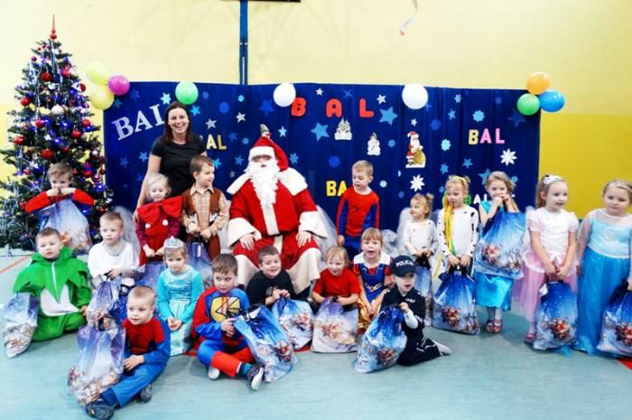 karnawałowy, na który przybyli: ksieżniczki, rycerze i inni bohaterowie bajek z oddziałów przedszkolnych i klas I - III SP. Podczas balu odbyły się konkursy m.in. taniec na gazecie, taniec z balonem i przechodzenie przez tor przeszkód. Każda klasa zorganizowała słodki poczęstunek. Było również poświąteczne spotkanie ze Św. Mikołajem, który rozdał dzieciom prezenty. Wszyscy doskonale się bawili.