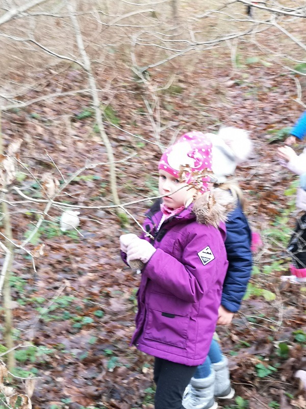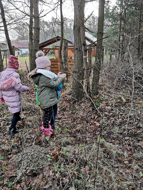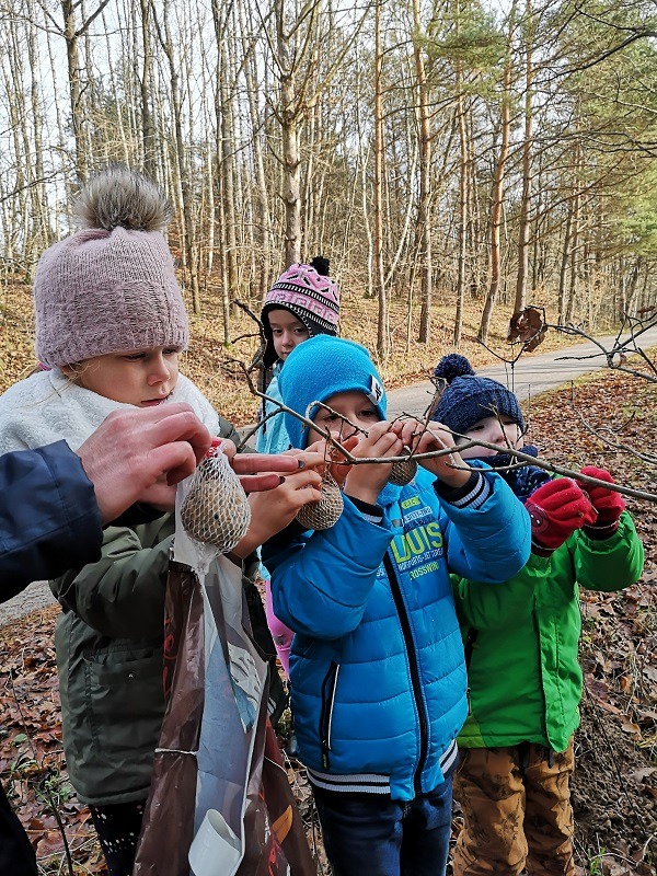 13 grudnia 2019 r. dzieci z oddziałów przedszkolnych 5 i 6-latków wraz z wychowczyniami wybrali się do pobliskiego lasu. Podczas wycieczki dzieci zawieszały na gałązki drzew karmę dla ptaków.