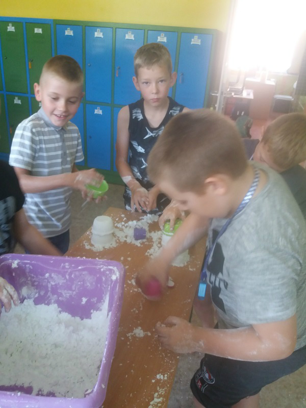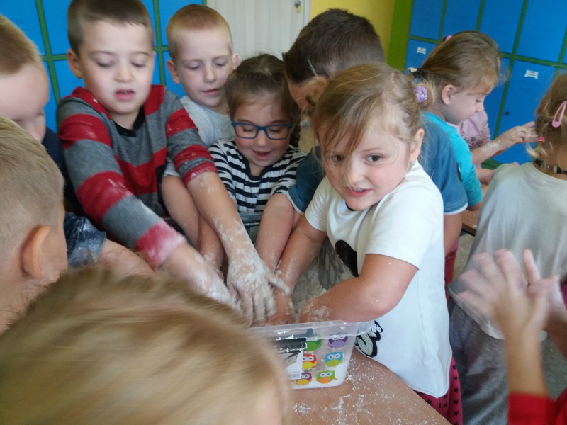 Jak stworzyć magiczny piasek? 20 wrzesśnia 2017 r. sekret poznali przedszkolaki i uczniowie klas I-III, wspólnie tworząc piasek o niezwykłych walorach