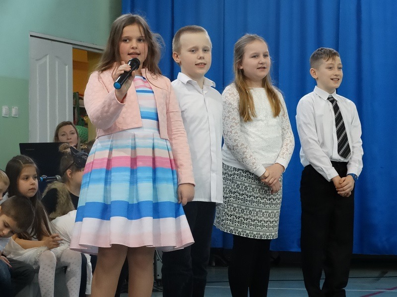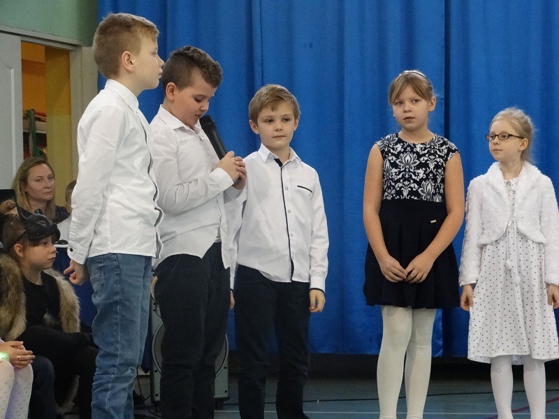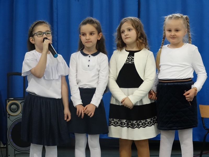 Wszystkich zebranych przywitała Pani dyrektor Mariola Łagoda- Ellwart. Dzieci z najmłodszych klas przygotowały wspaniałe występy artystyczne przepełnione radością, śpiewem i tańcem.