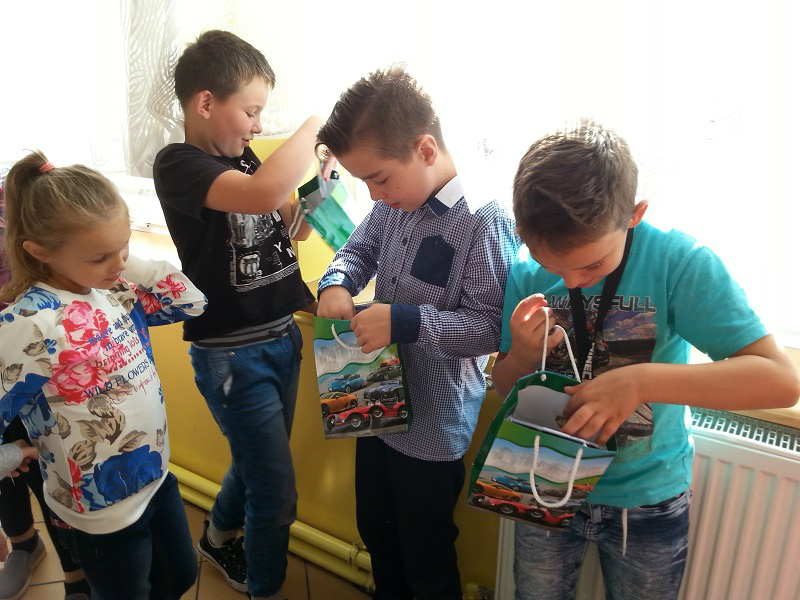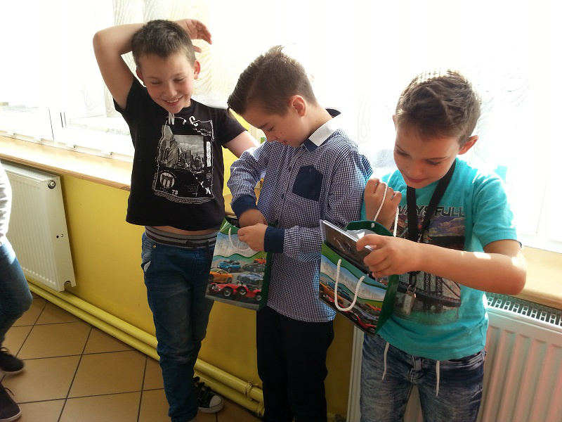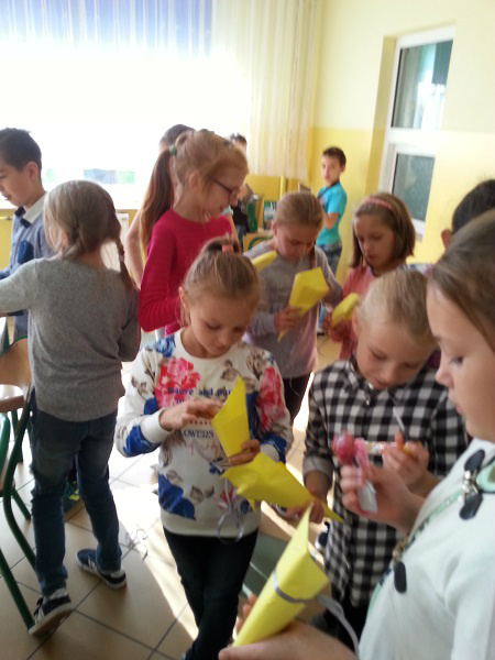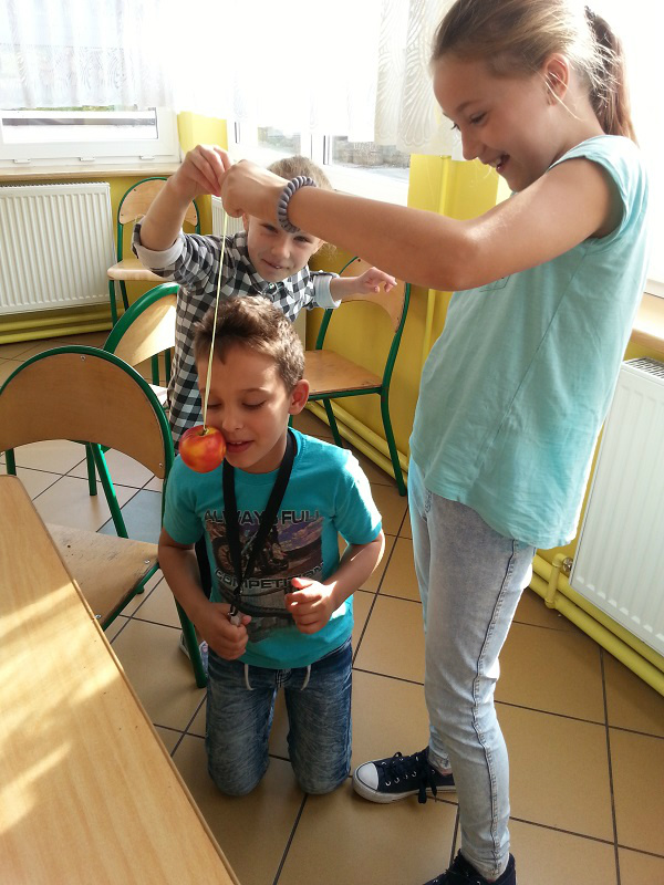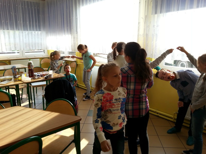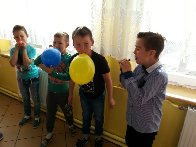 Z okazji Dnia Chłopaka dziewczynki z klasy IV a wraz z wychowawczynią p. Anną Wiśniewską przygotowały dla swoich kolegów drobne upominki. Chłopcy zmierzyli się również w konkursie dmuchania balonów oraz jedzenia jabłek bez używania rąk.