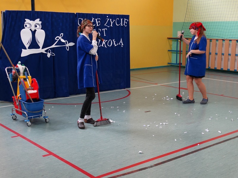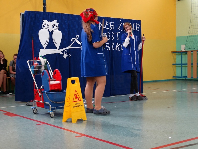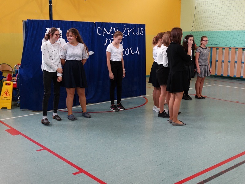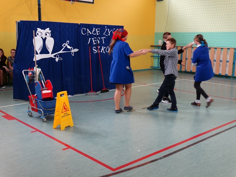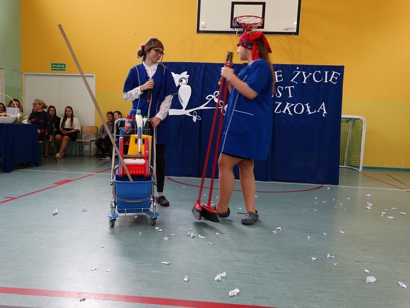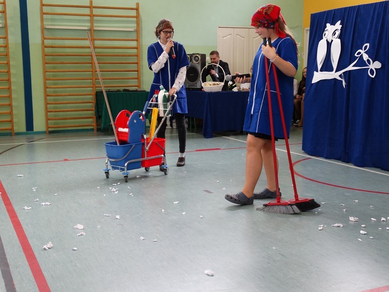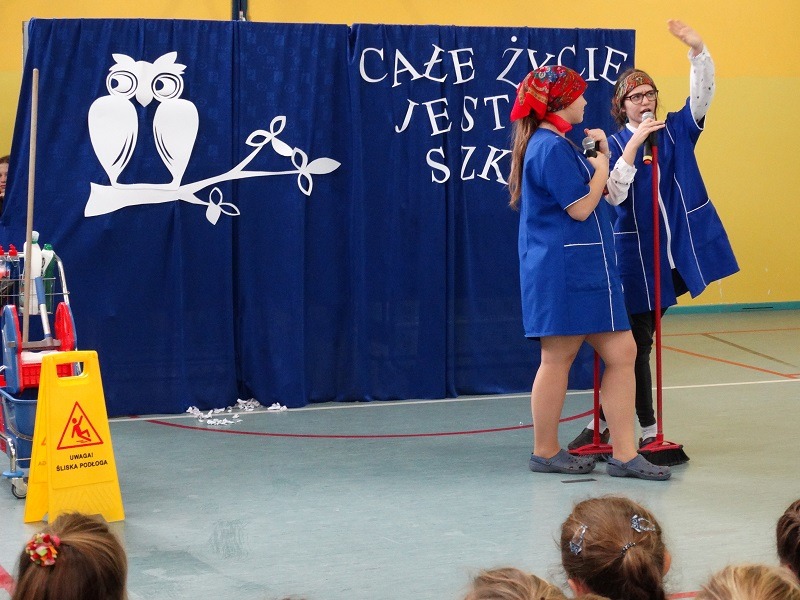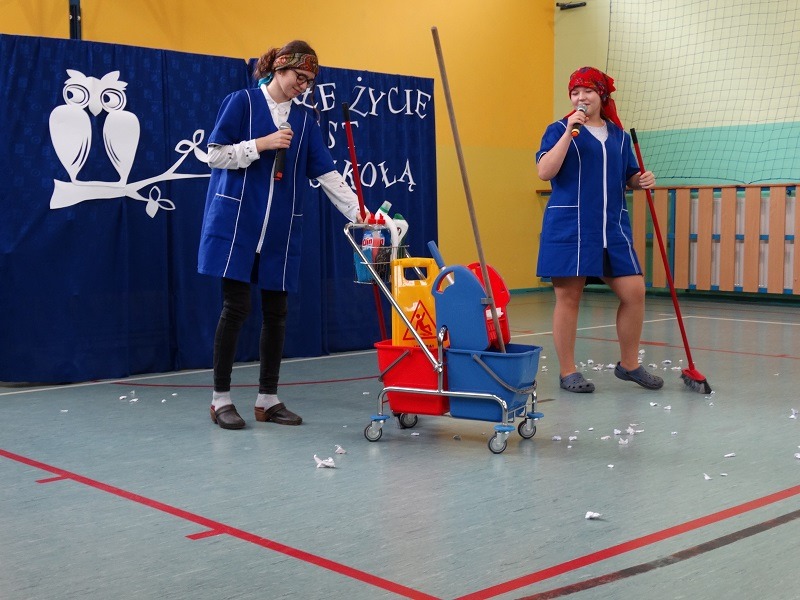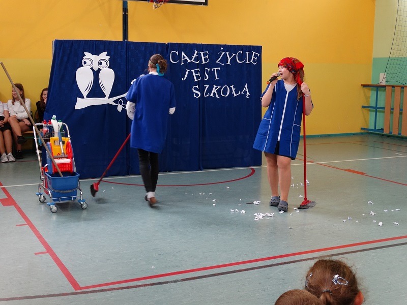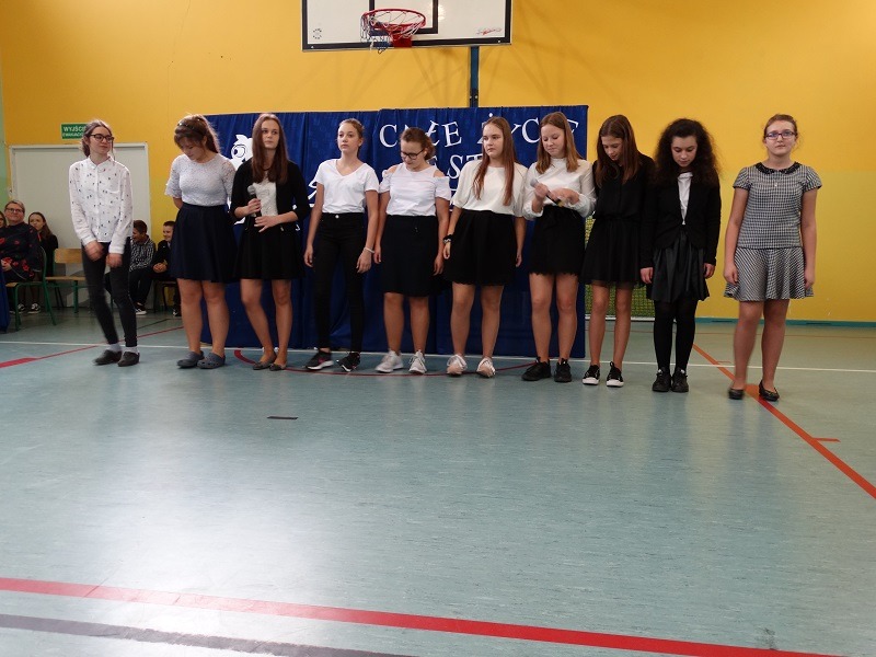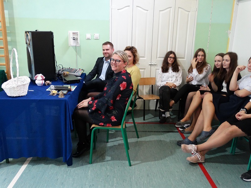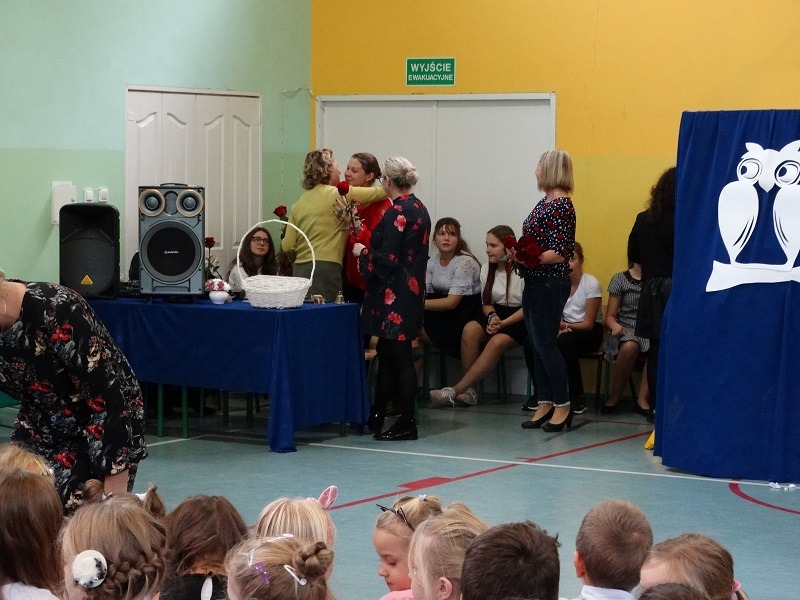 przygotowali uczniowie uczestniczący w Kole Wolontariatu pod opieką p. Katarzyny Stafińskiej, p. Joanny Rybickiej oraz p. Andrzeja Mościckiego. Pani dyrektor złożyła najserdeczniejsze życzenia nauczycielom oraz pracownikom szkoły. Do życzeń przyłaczył się również Samorząd Uczniowski oraz Rada Rodziców.