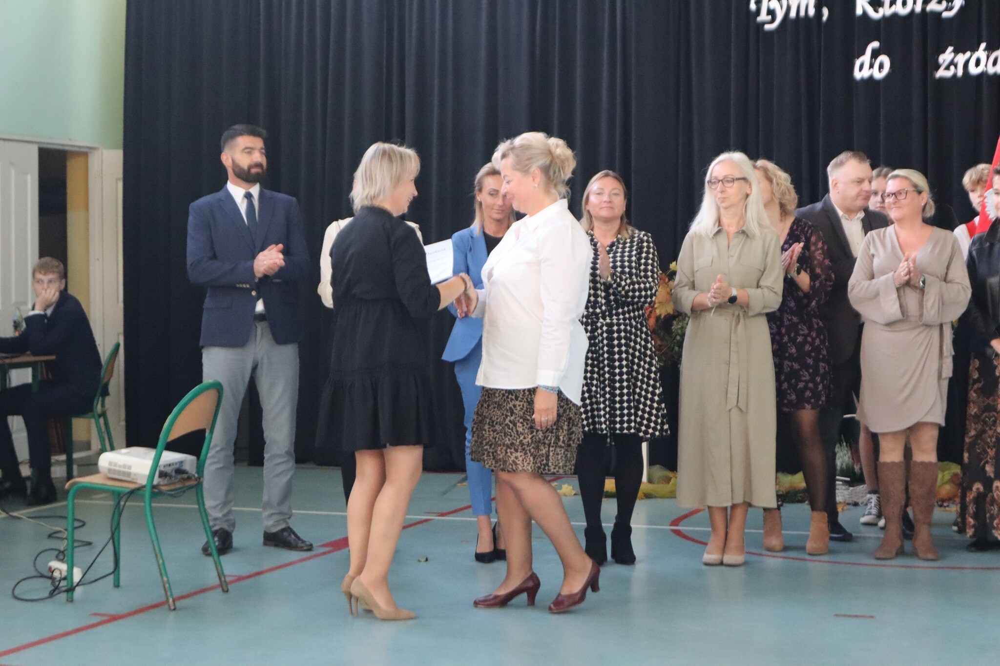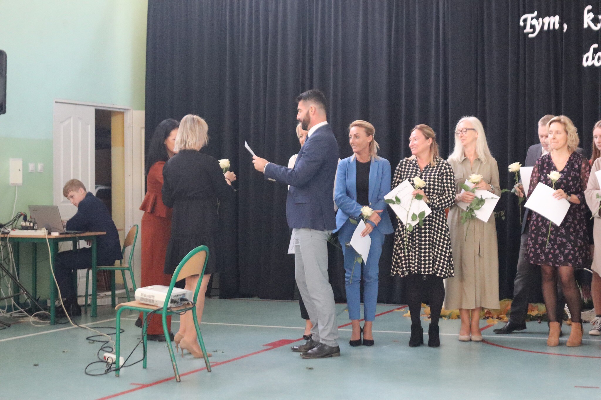 Podczas apelu pani dyrektor miała także zaszczyt wręczyć nagrody dla nauczycieli oraz pracowników obsługi i administracji, doceniając tym samym ich niezastąpiony wkład w rozwój młodych umysłów.