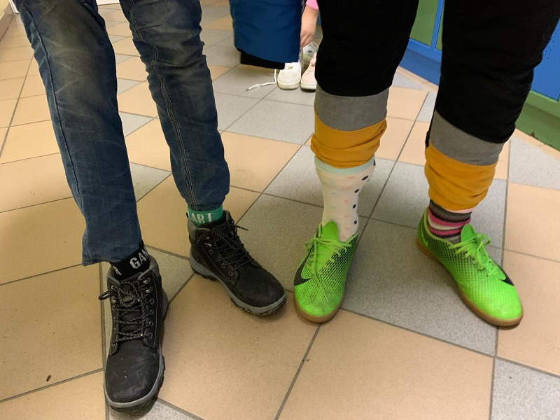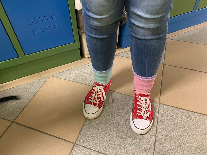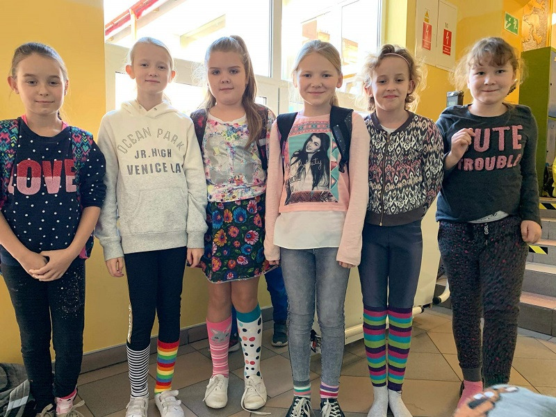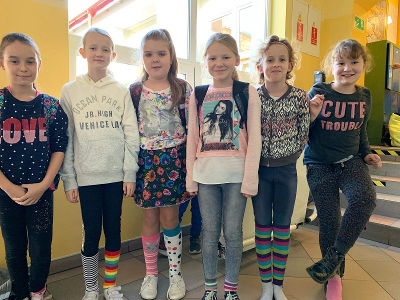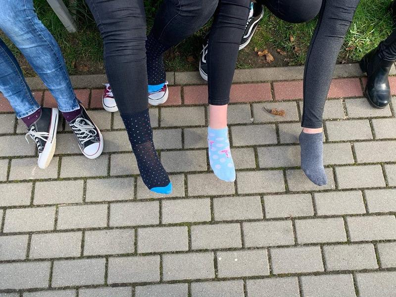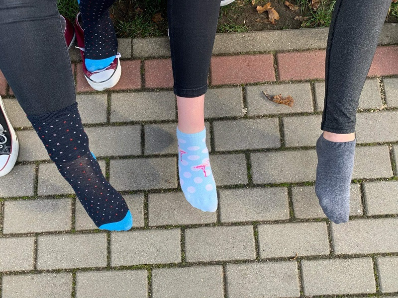 30 października 2019 r. w naszej szkole odbył się Dzień Kolorowej skarpetki . Jest to kampania edukacyjno - informacyjna zwracajaca uwagę na problemy ludzi z zespołem Downa. ,,Zakładając kolorowa skarpetkę zwracamy na siebie uwagę, a tym samym zwracamy uwagę na problemy ludzi chorych na Zespół Downa. W światowym Dniu Chorych na Zespół Downa chcemy pokazać, ze różni nas od nich tak niewiele, jeden dodatkowy, niepasujacy chromosom - tak jak nasza dodatkowa, niepasująca skarpetka!"