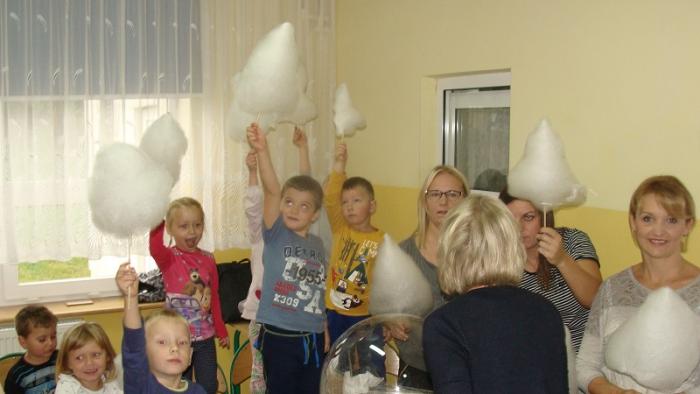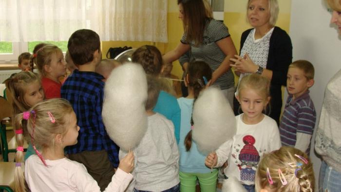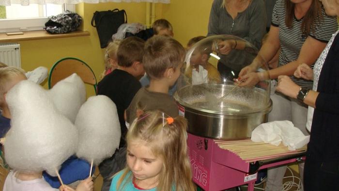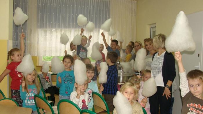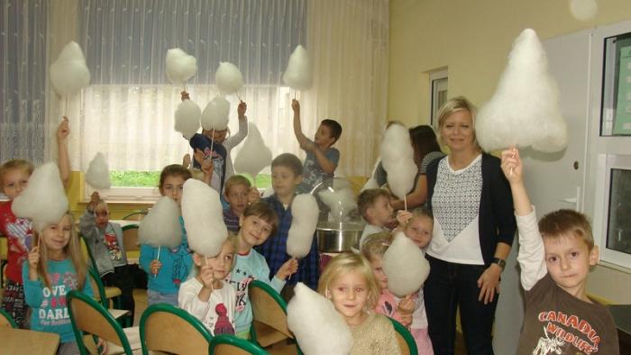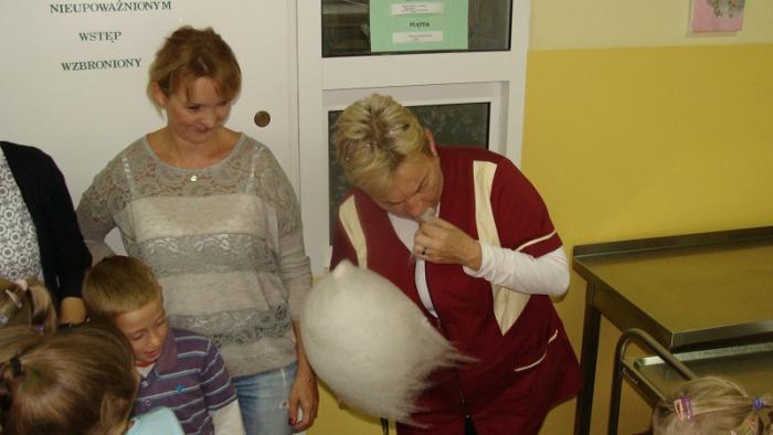 Pani Joanna Medalion przygotowała dla dzieci pokaz robienia waty cukrowej oraz wyjaśniła im proces jej tworzenia. Następnie wszyscy otrzymali słodki wyrób.