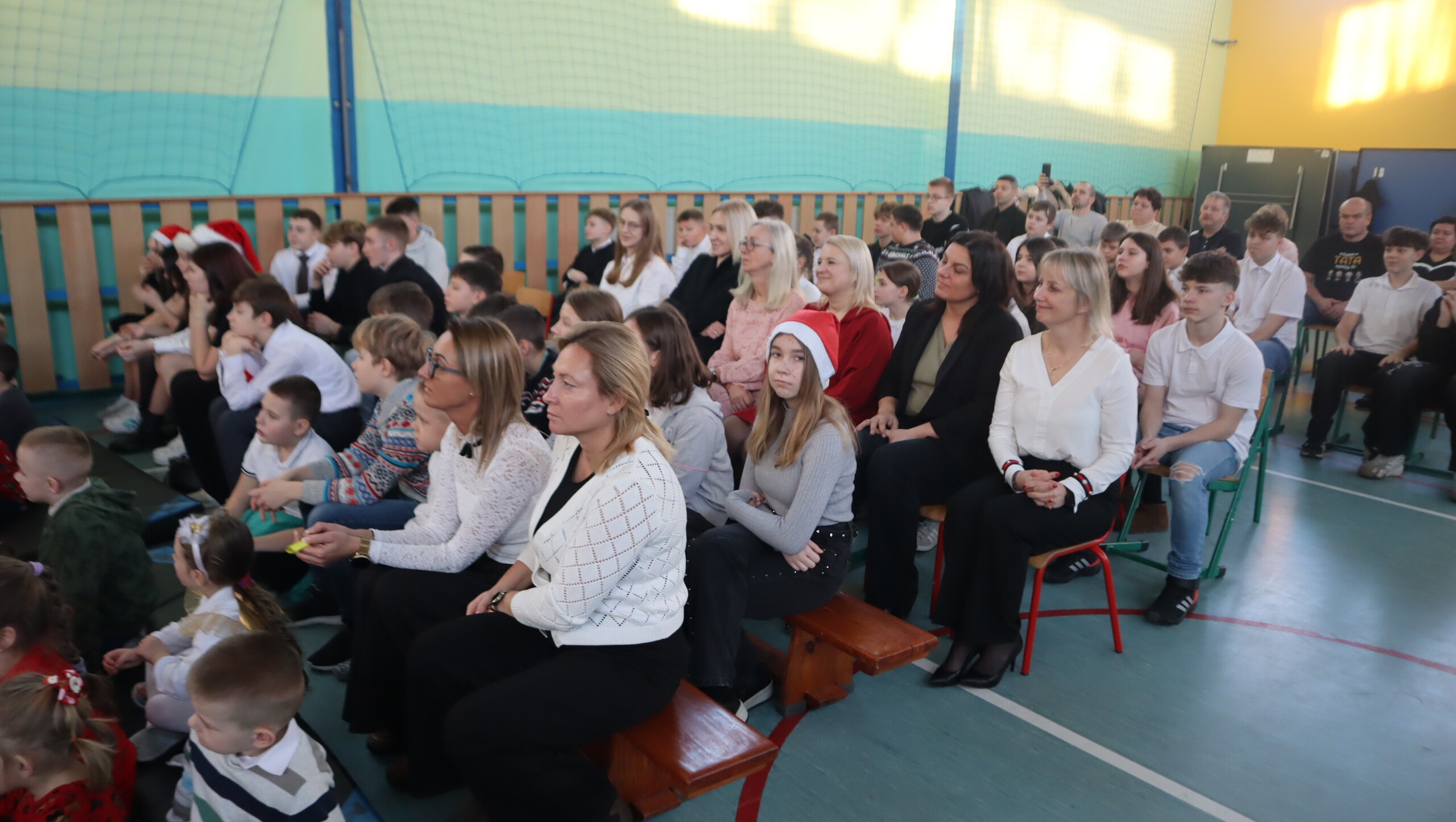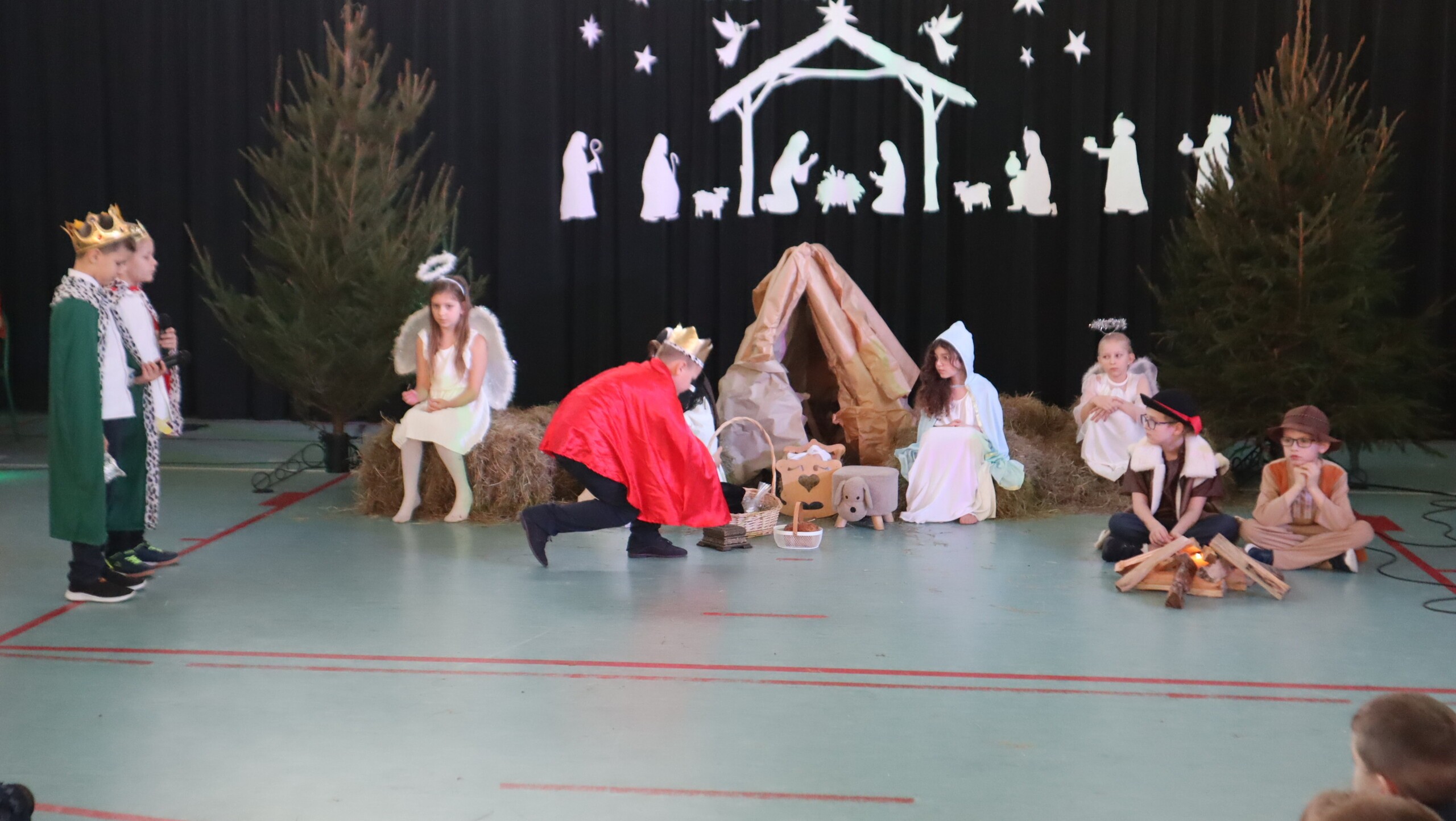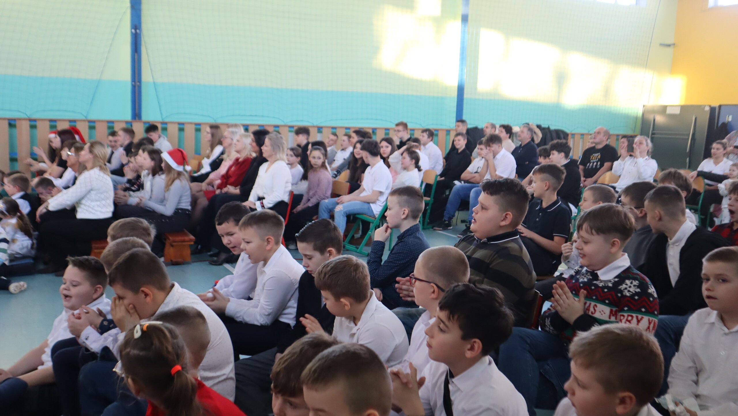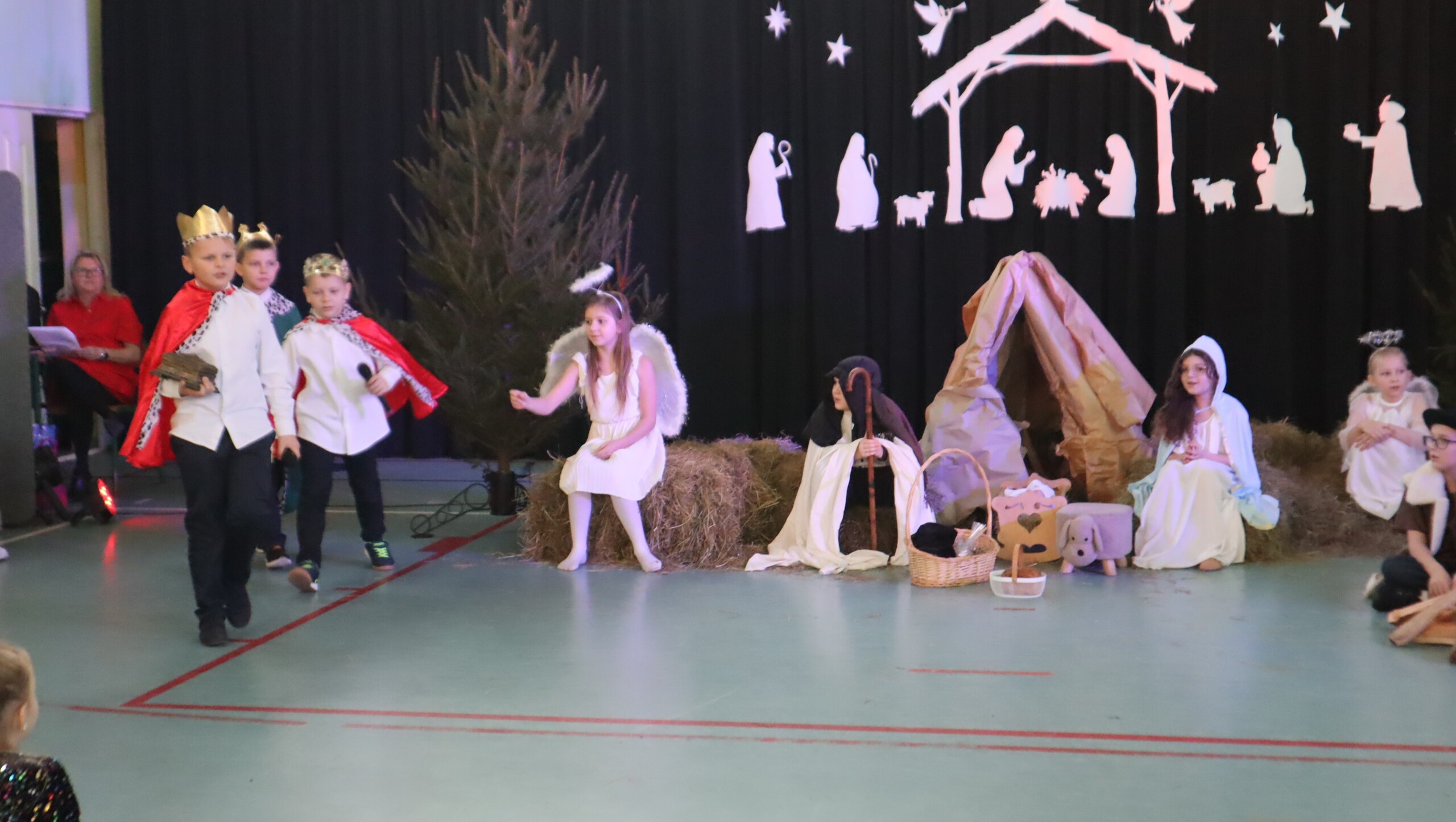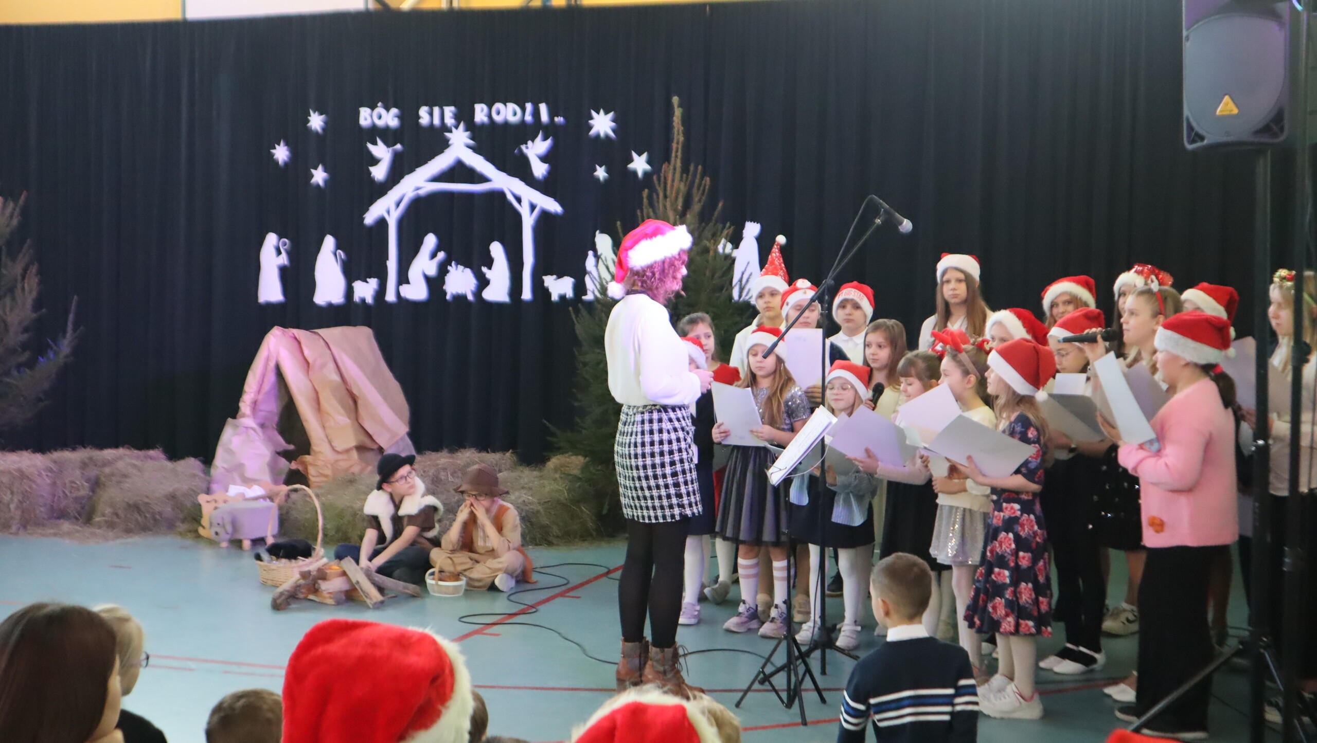 Pani Dyrektor podziękowała za przepiękne występy pełne wzruszeń, a następnie skierowała serdeczne życzenia świąteczne do uczniów, rodziców, nauczycieli oraz pracowników szkoły, podkreślając znaczenie miłości, życzliwości i radości płynącej ze wspólnie spędzonych chwil.