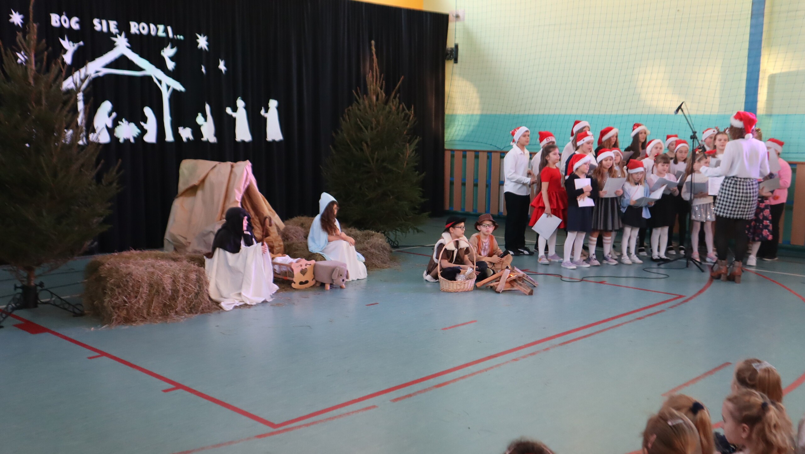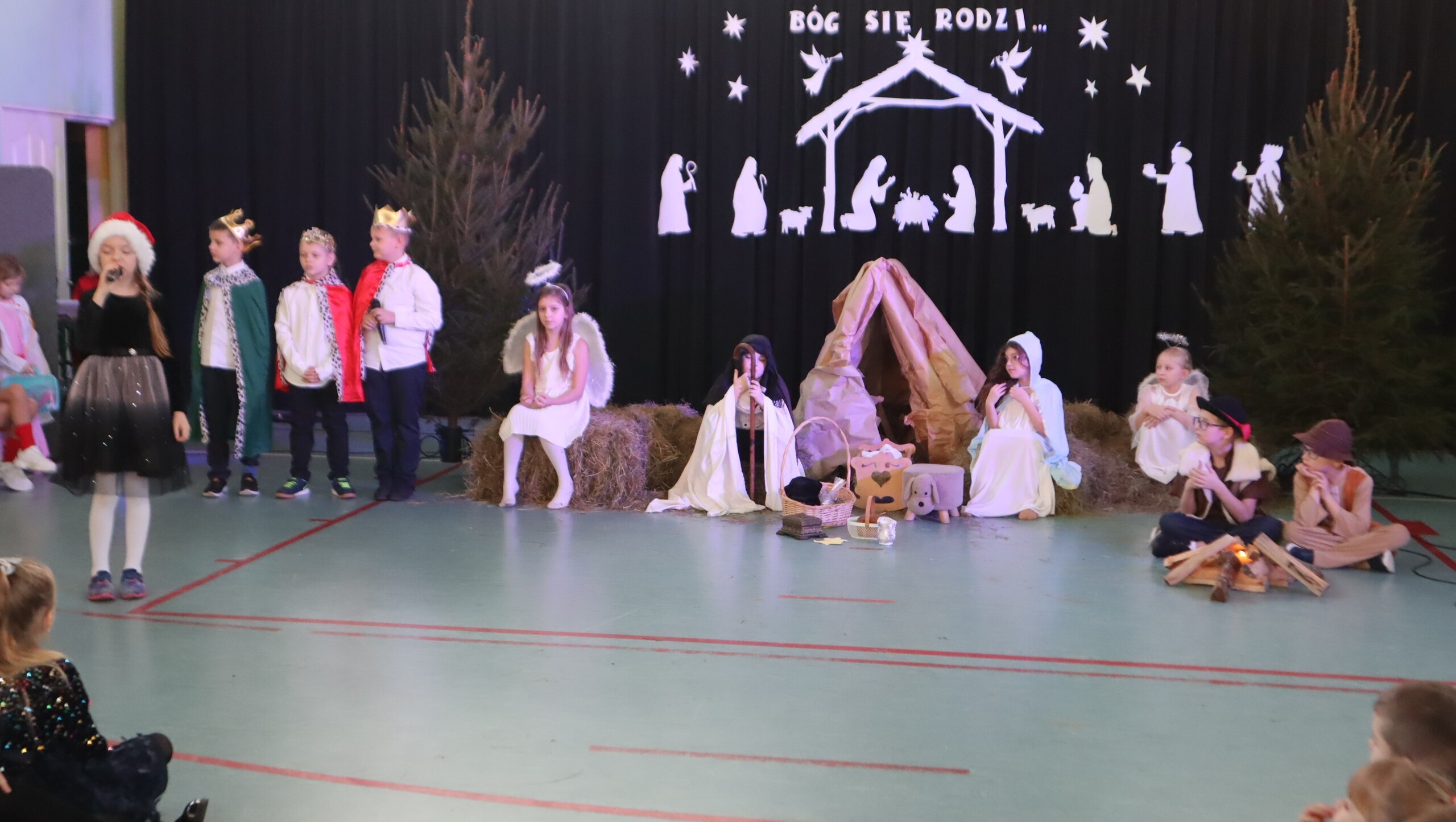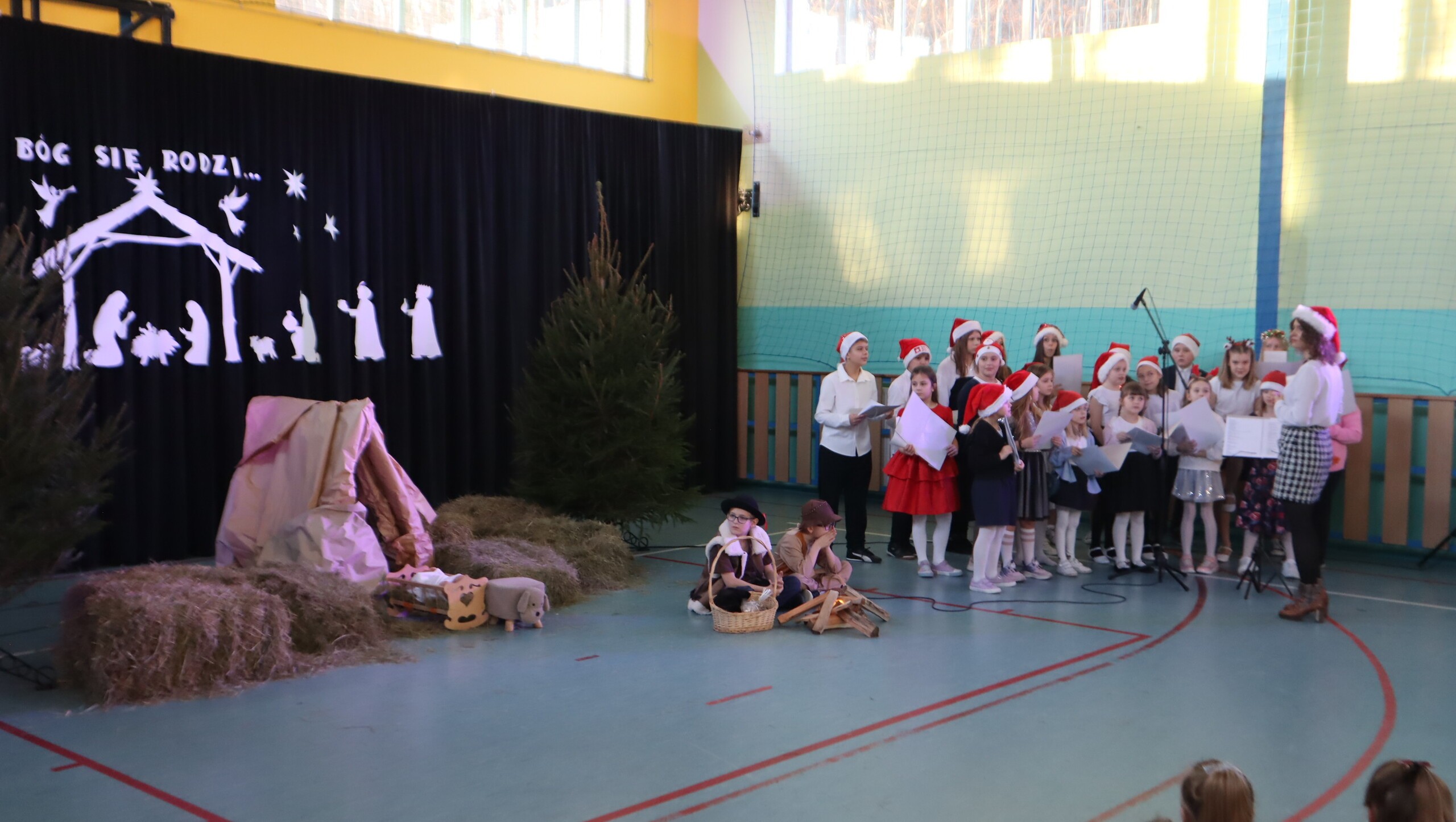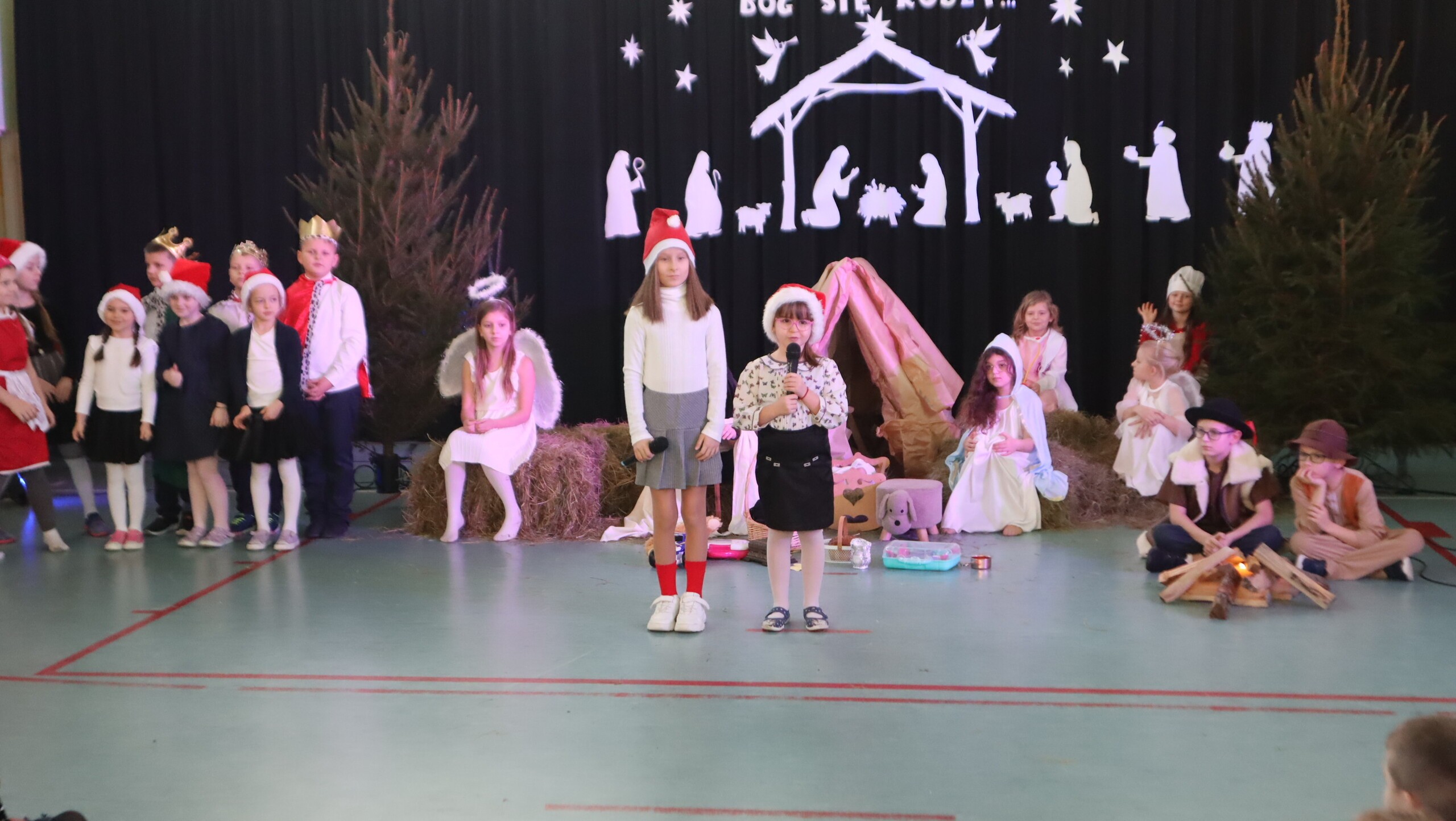 Pani Dyrektor podziękowała za przepiękne występy pełne wzruszeń, a następnie skierowała serdeczne życzenia świąteczne do uczniów, rodziców, nauczycieli oraz pracowników szkoły, podkreślając znaczenie miłości, życzliwości i radości płynącej ze wspólnie spędzonych chwil.