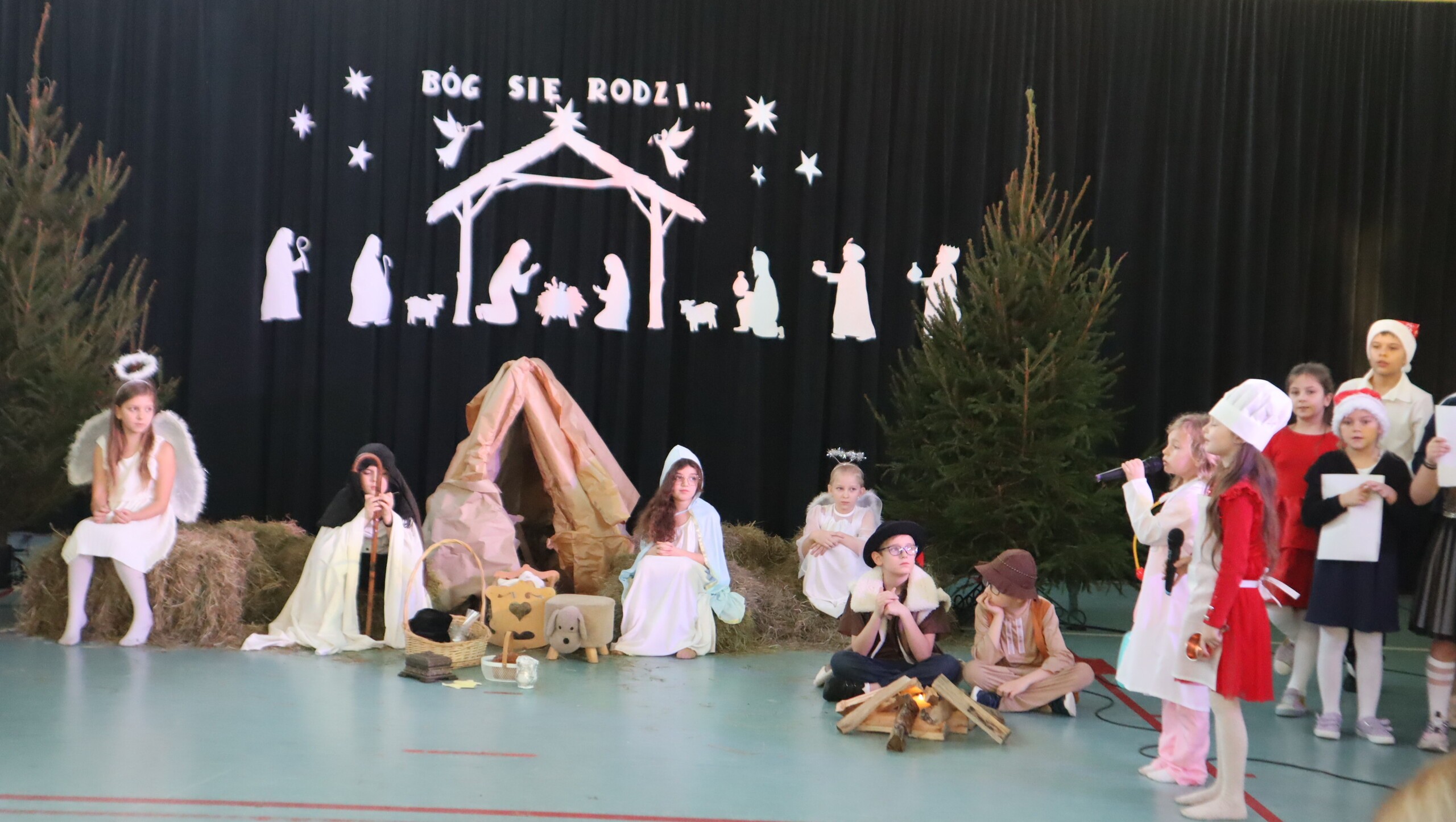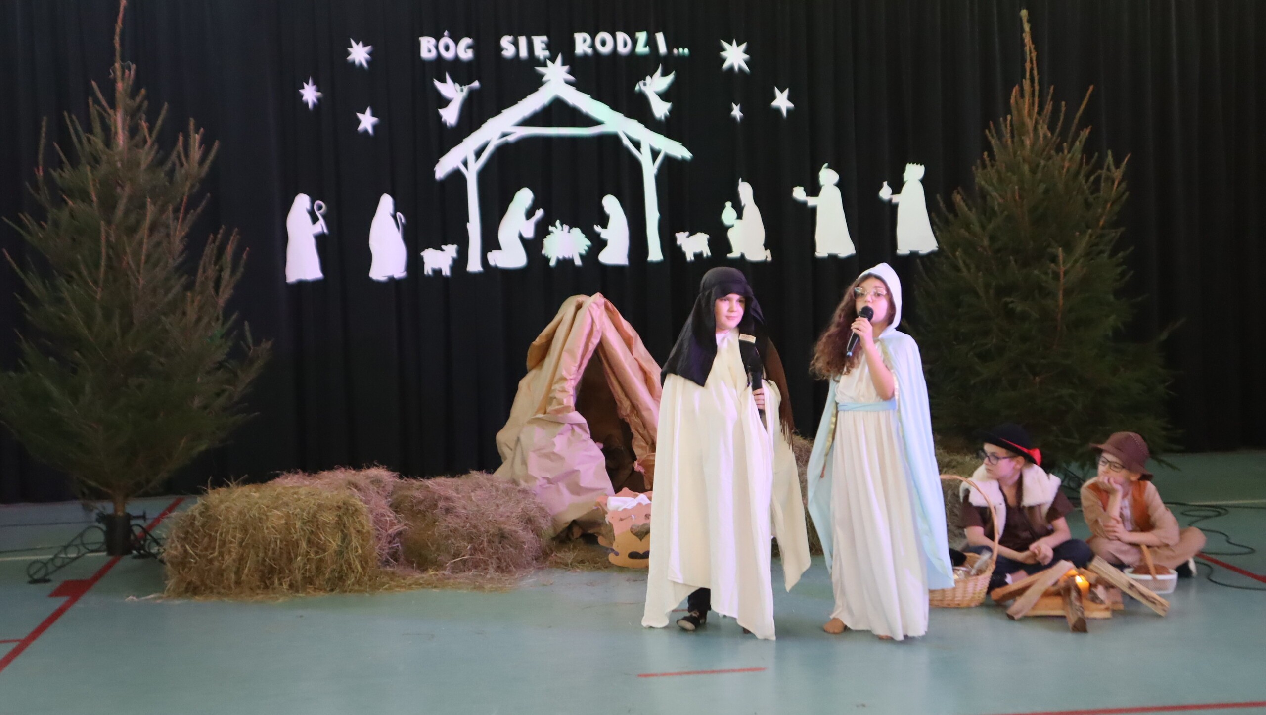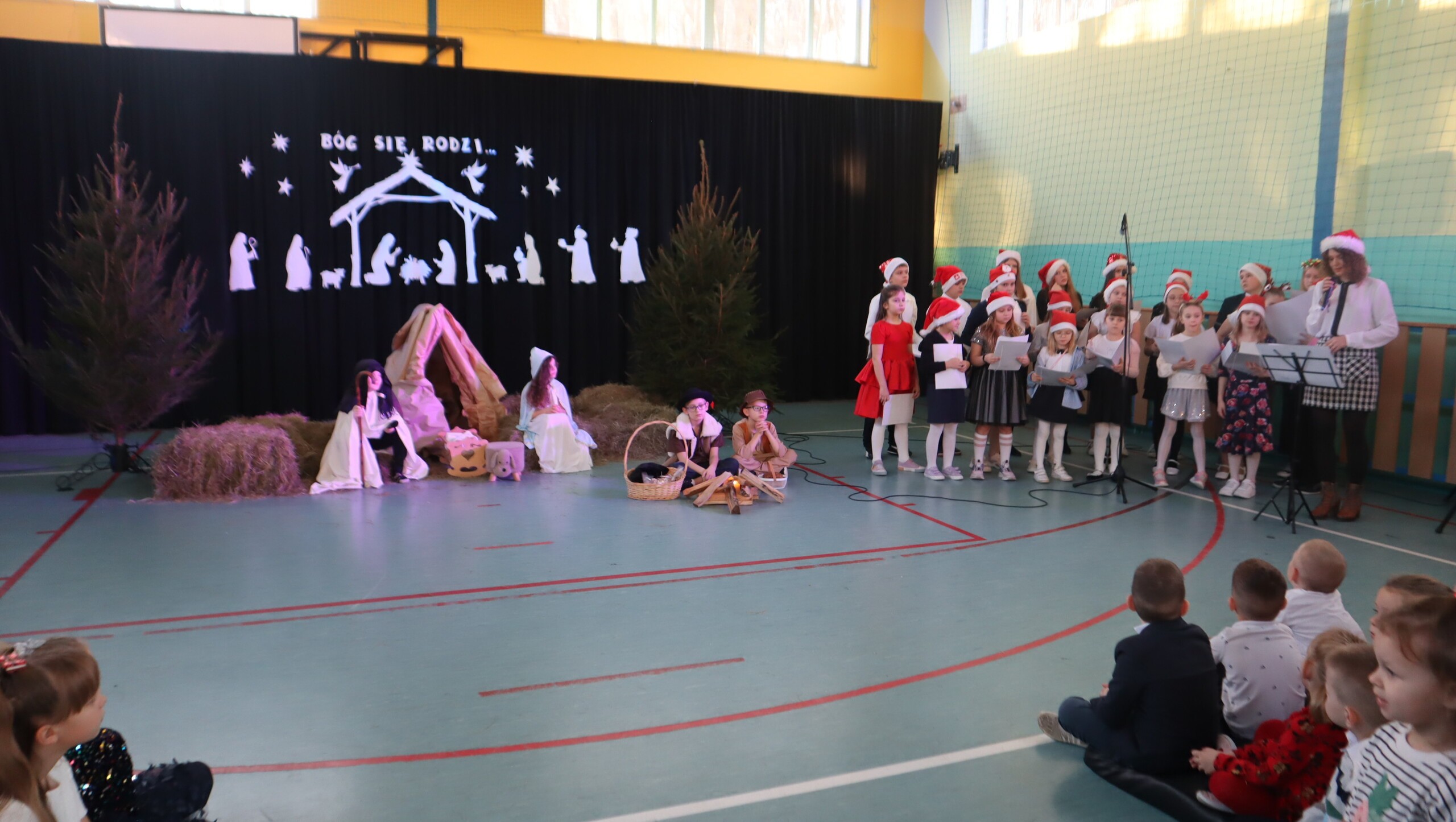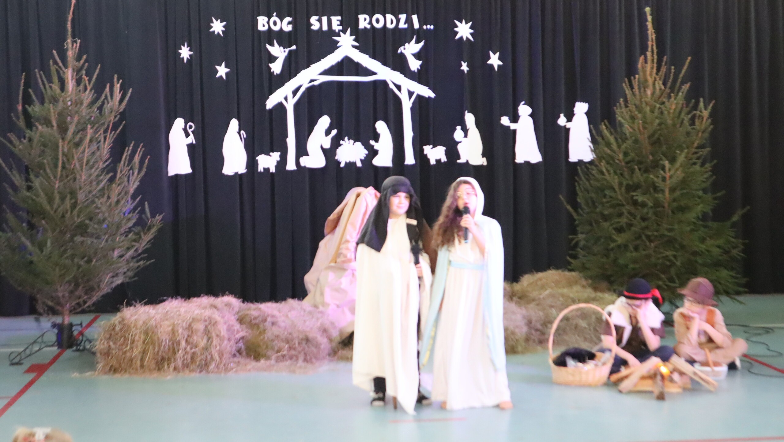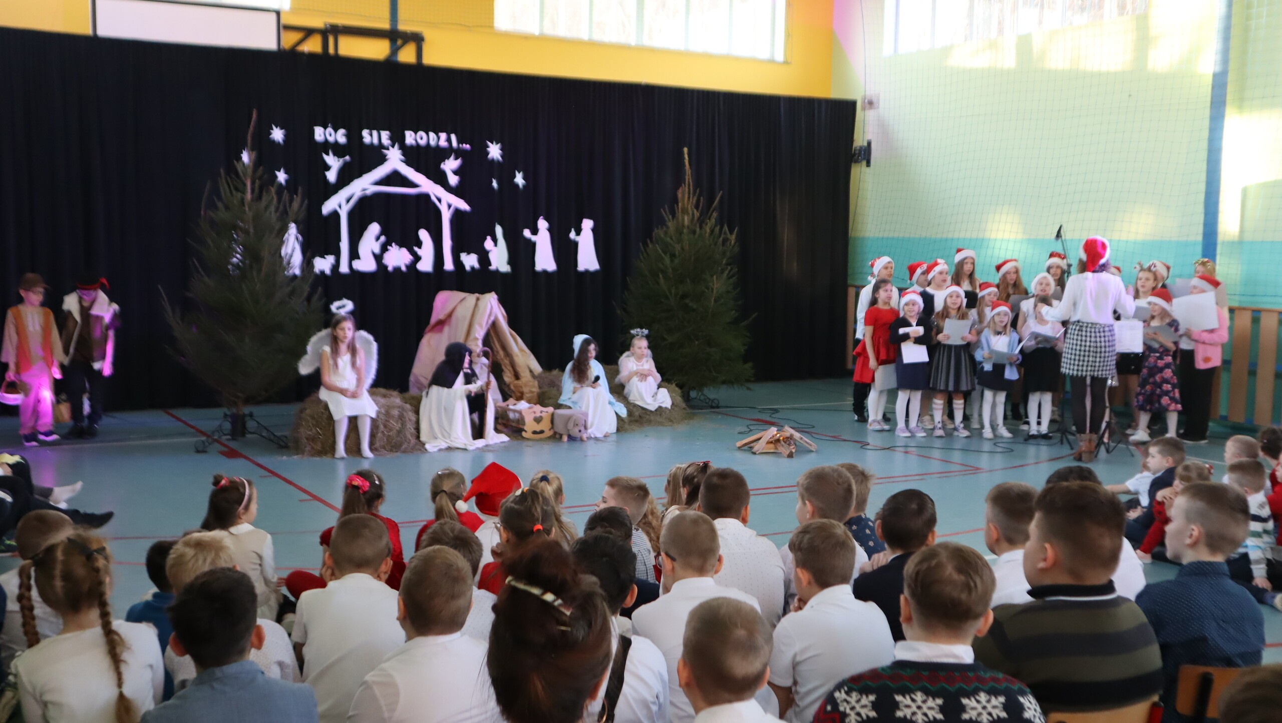 Pani Dyrektor podziękowała za przepiękne występy pełne wzruszeń, a następnie skierowała serdeczne życzenia świąteczne do uczniów, rodziców, nauczycieli oraz pracowników szkoły, podkreślając znaczenie miłości, życzliwości i radości płynącej ze wspólnie spędzonych chwil.