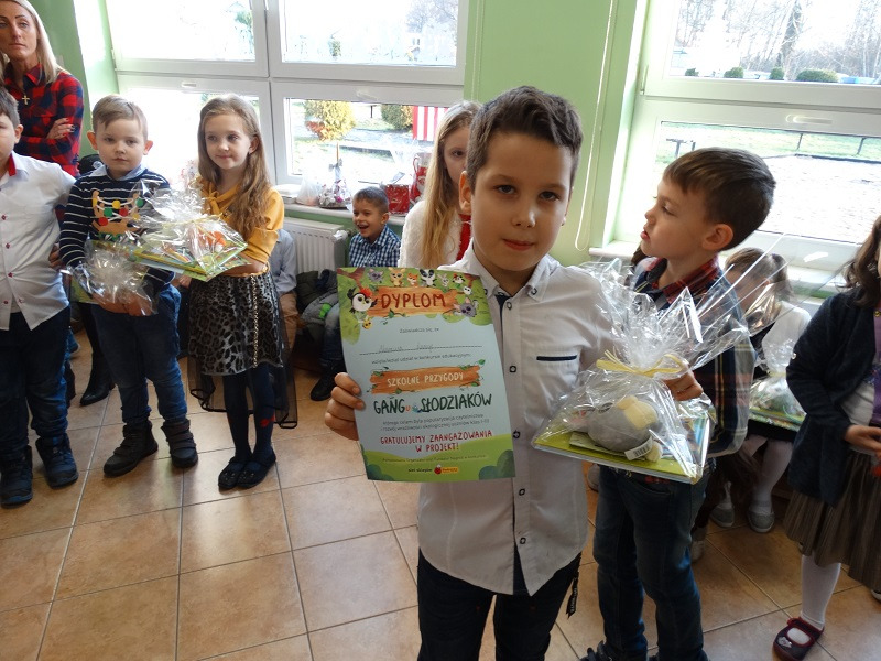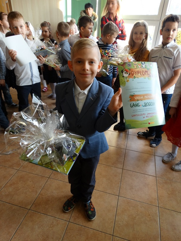 na przeprowadzeniu w szkole obchodów Dnia Głośnego Czytania (z wykorzystaniem opowiadań o przygodach Słodziaków) oraz przygotowaniu wspólnie z uczniami dekoracji pod hasłem „Magiczne Drzewo Słodziaków” uświetniającej wydarzenie. Celem konkursu było zaszczepienie w dzieciach pasji do czytania oraz uwrażliwienie na kwestie ekologiczne.