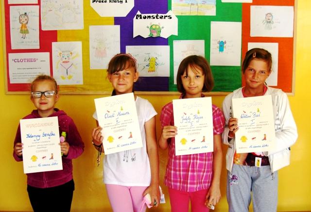 18 czerwca 2014 r. został rozstrzygnięty szkolny konkurs językowo – plastyczny z języka angielskiego dla klas I – III Szkoły Podstawowej zorganizowanym przez nauczyciela języka angielskiego p. Monikę Naczk. Tematem konkursu były „Clothes” czyli ubrania. Jury oceniając prace brało pod uwagę estetykę pracy, technikę i samodzielność wykonania. Najważniejszym kryterium oceny było poprawne podpisanie ubrań w języku angielskim.