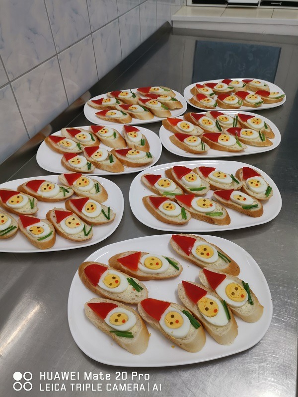 Pysznie , zdrowo, kolorowo. Tak trzema słowami można opisać dania przygotowywane przez nasze kucharki. W zaciszu naszej kuchni powstają niemalże arcydzieła kulinarne. Panie kucharki wykazują się ogromną kreatywnością, aby wszystkie dzieci (także "niejadki") zjadły śniadanka i obiadki np.na kanapkach pojawiają się m.in: kwiatki, serduszka, krasnale itd. Panie pieką gofry, naleśniczki , placuszki.