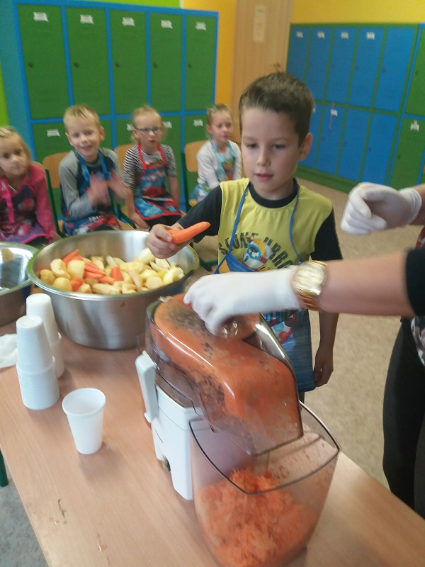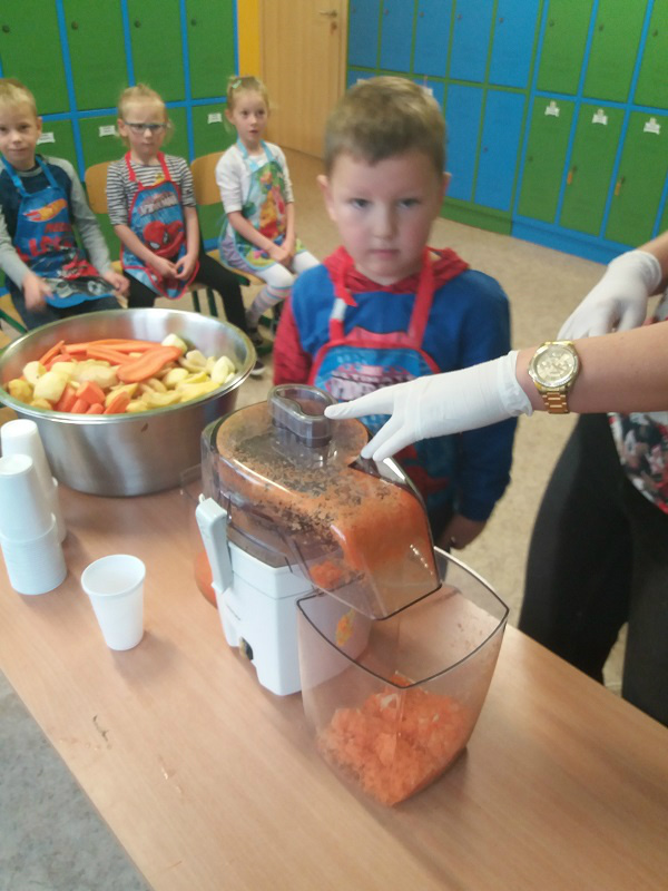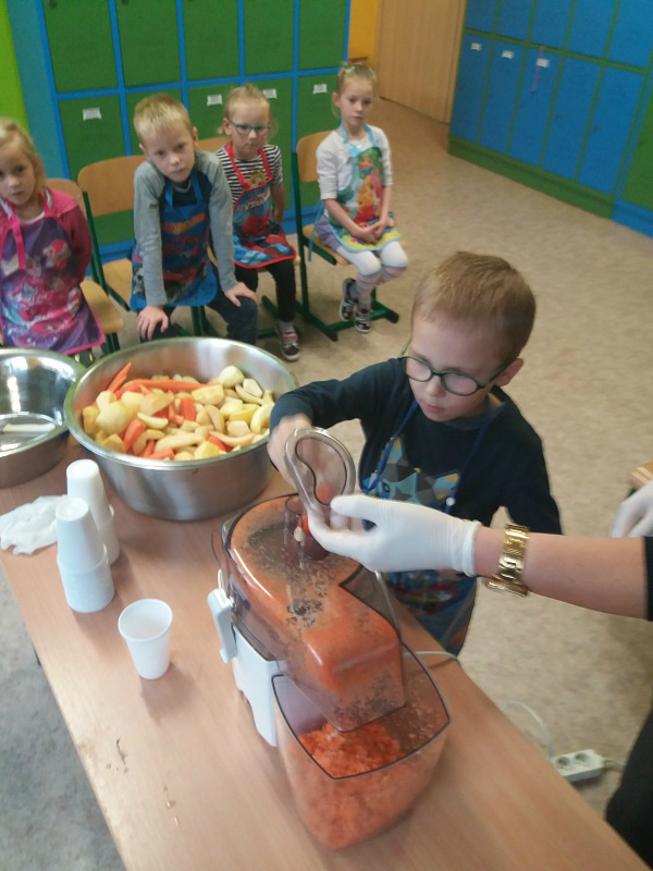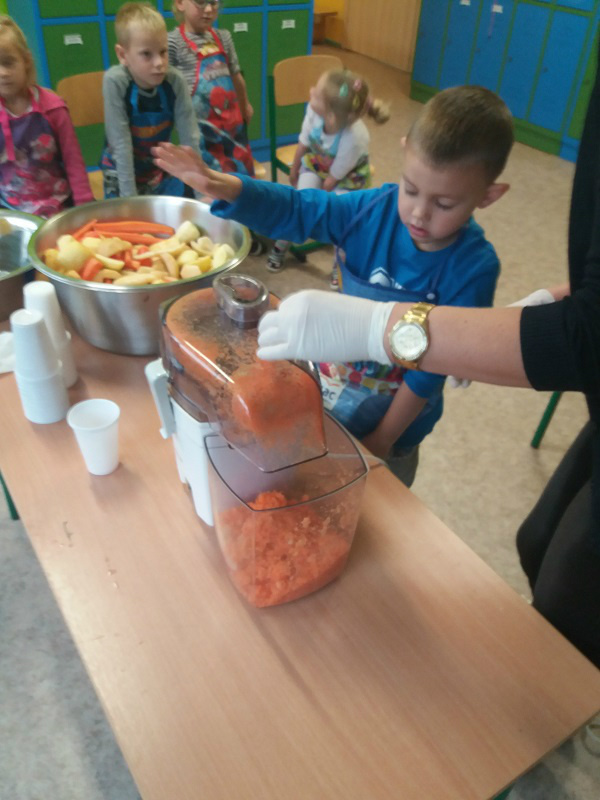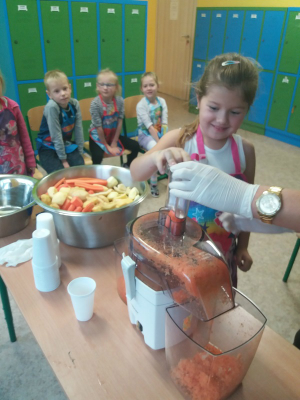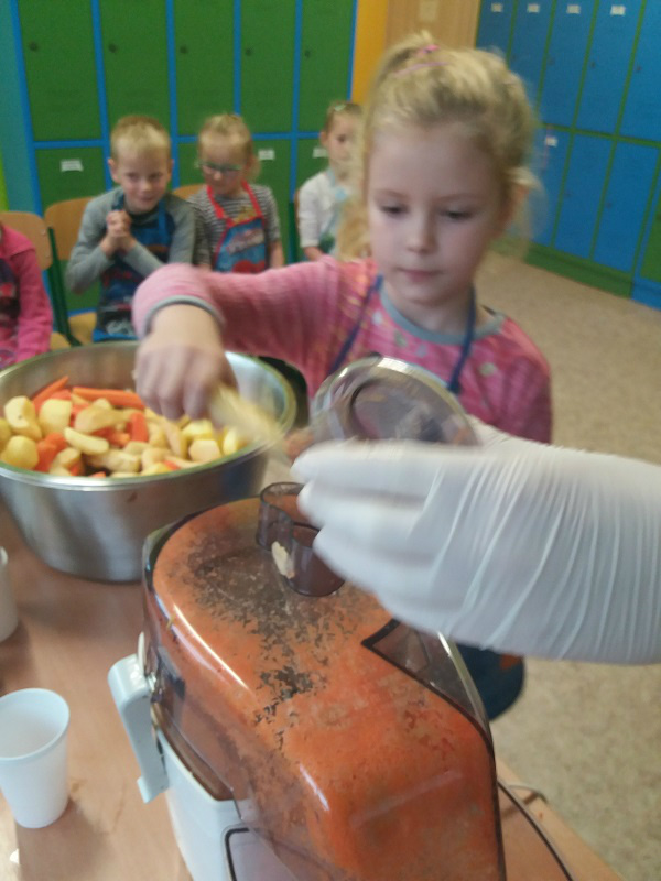 Przedszkolaki w naszej szkole dobrze wiedzą, jak bardzo bogate w witaminy są soki z warzyw i owoców, dlatego 12.10.2017 r. postanowiliśmy własnoręcznie przygotować