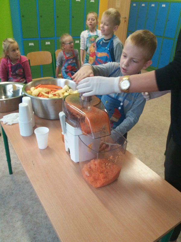 te pyszności. Okazało się to bardzo proste. Wszyscy z wielkim zapałem zabraliśmy się do pracy, by przygotować zdrowe soki bez cukru i konserwantów.