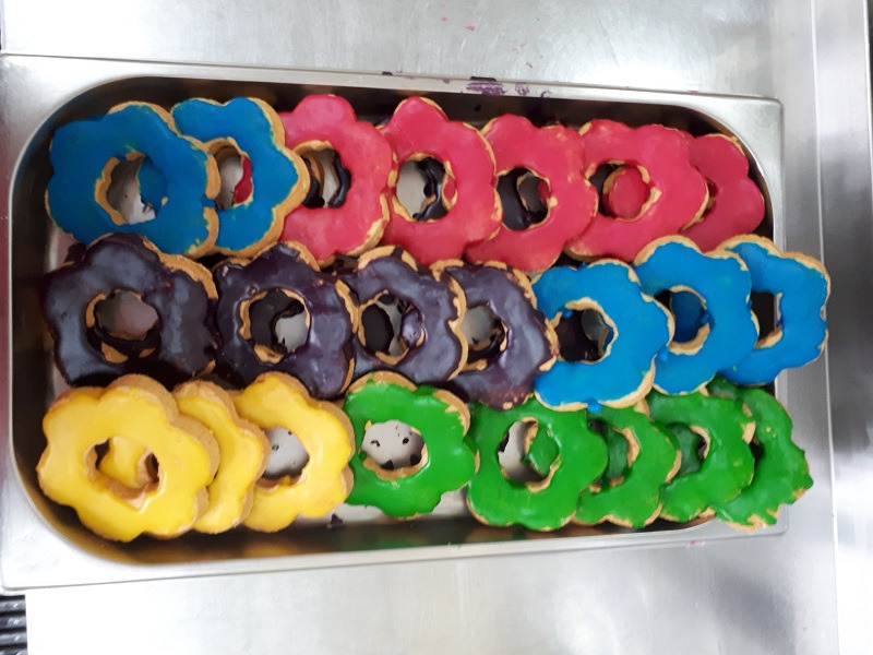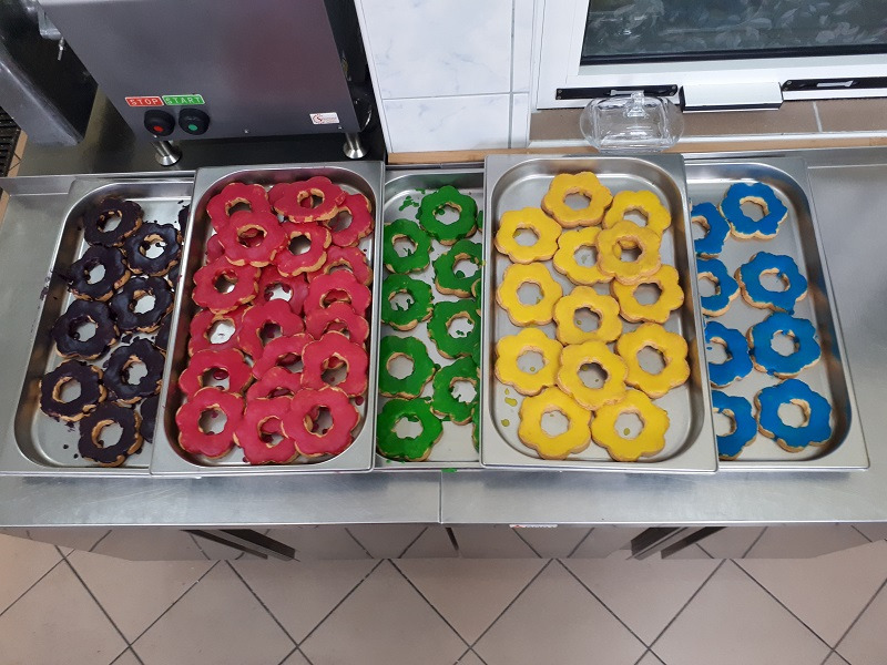 8 marca 2017 r . dla każdego dziecka jedzącego obiadek nasze kucharki przygotowały słodką niespodziankę. Kolorowe ciastka z okazji Dnia Kobiet wszystkim bardzo smakowały.