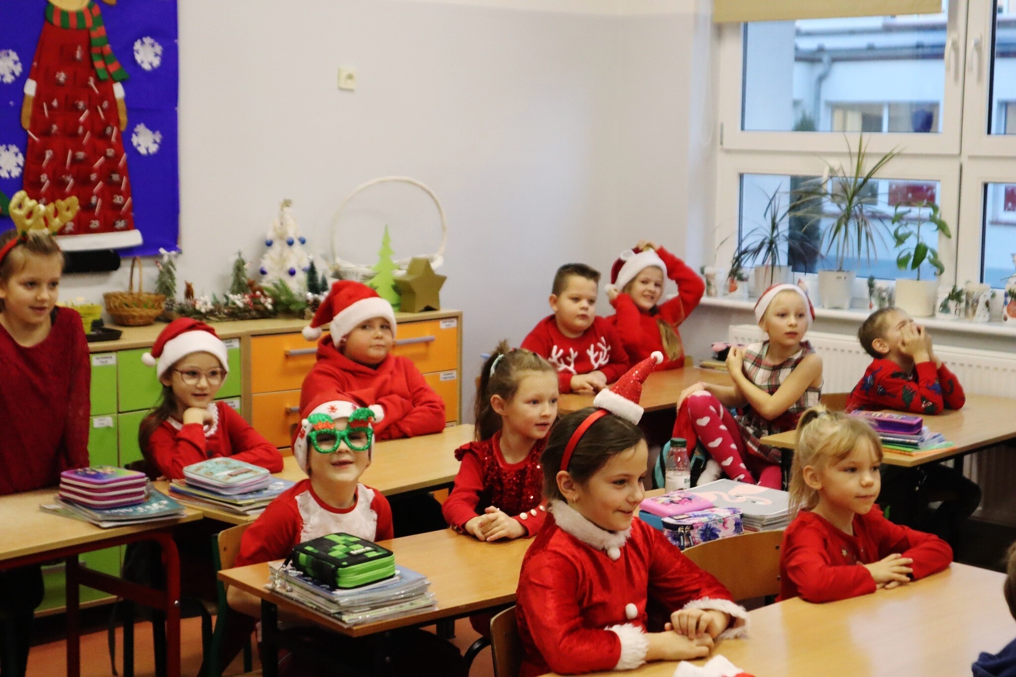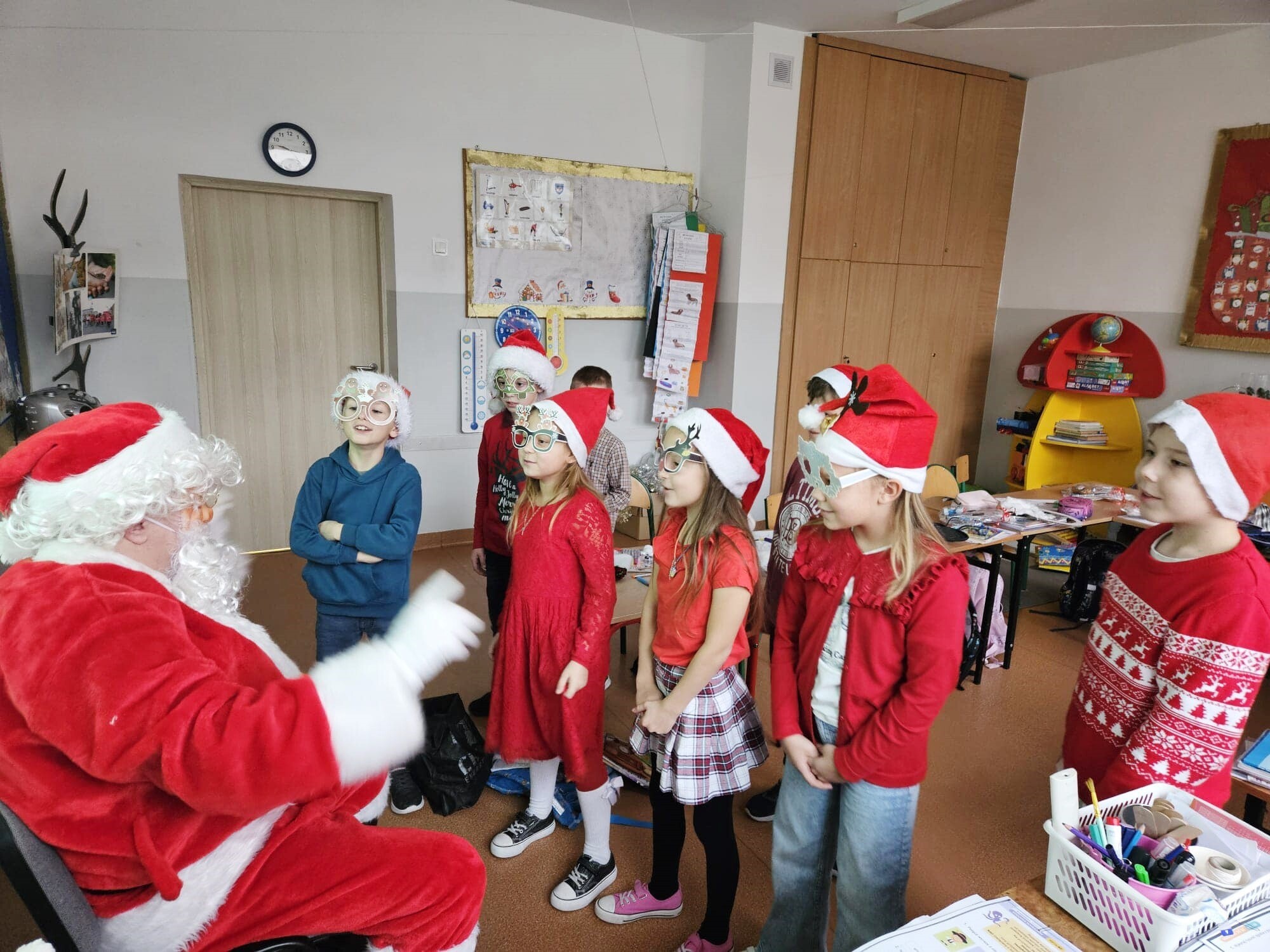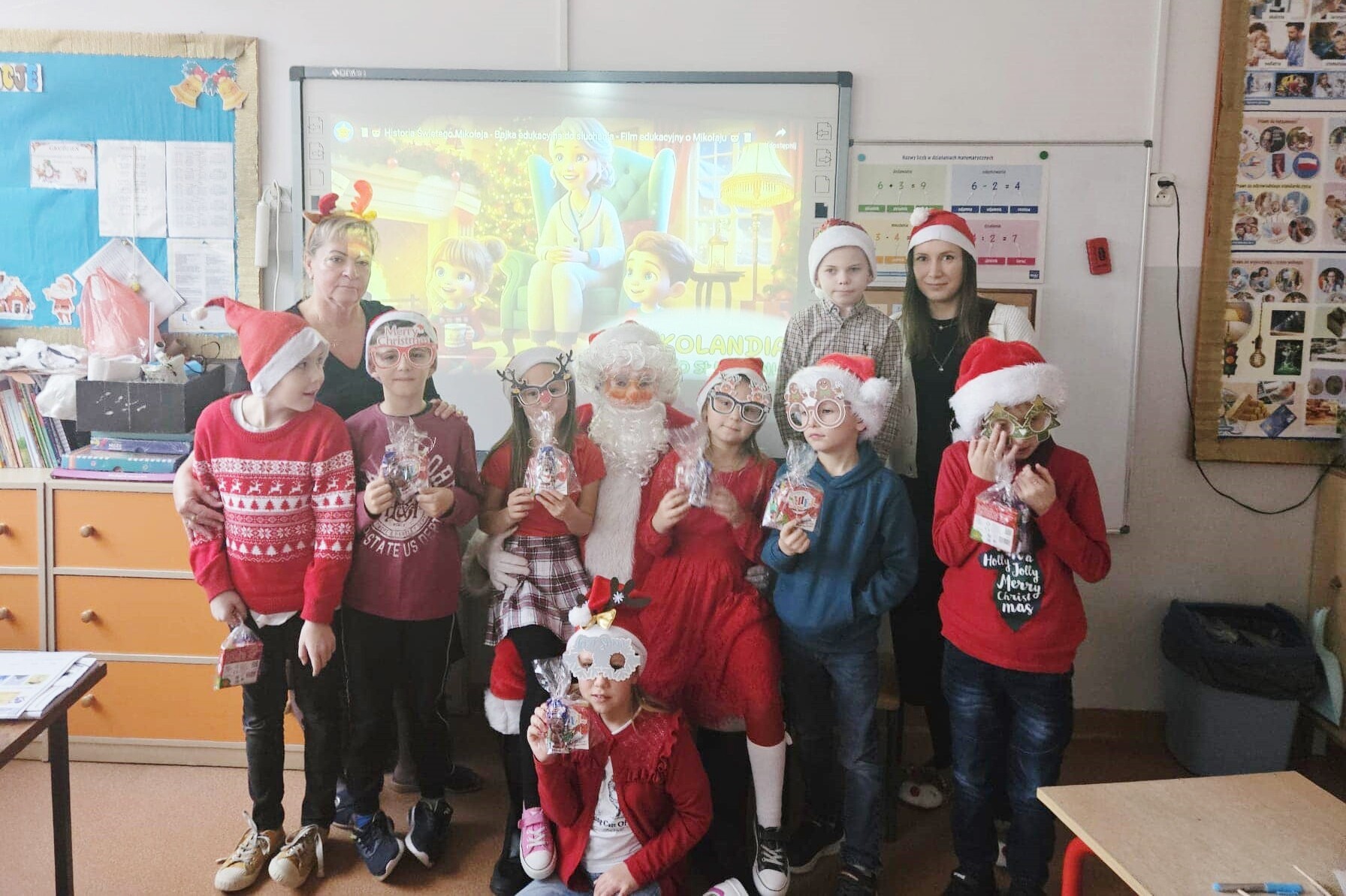 Za nami wyjątkowe Mikołajki, był to dzień pełen radości, uśmiechu i świątecznej magii. Filmowe seanse zgromadziły dzieci w świątecznej atmosferze. Wspólnie oglądaliśmy filmy, które wprowadziły nas w bożonarodzeniowy nastrój. Pyszne gofry, przygotowane przez rodziców, cieszyły się ogromnym powodzeniem. Ich zapach unosił się w całej szkole, tworząc wyjątkowy klimat. Święty Mikołaj odwiedził nasze dzieci, przynosząc prezenty i wywołując mnóstwo radości. Każde dziecko mogło porozmawiać z Mikołajem i zrobić sobie z nim zdjęcie. Szkoła tętniła dziś świąteczną atmosferą. Dziękujemy serdecznie wszystkim, którzy przyczynili się do organizacji tego dnia – szczególnie rodzicom za przygotowanie smakołyków, a nauczycielom i pracownikom za wsparcie w realizacji wszystkich atrakcji.