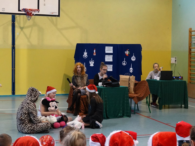 6 grudnia 2017 r . obchodziliśmy w naszej szkole MIkołajki . Uczniowie udzielający się w Szkolnym Kole Wolontariatu zaprezentowali przedstawienie pt. "Boże Narodzenie.