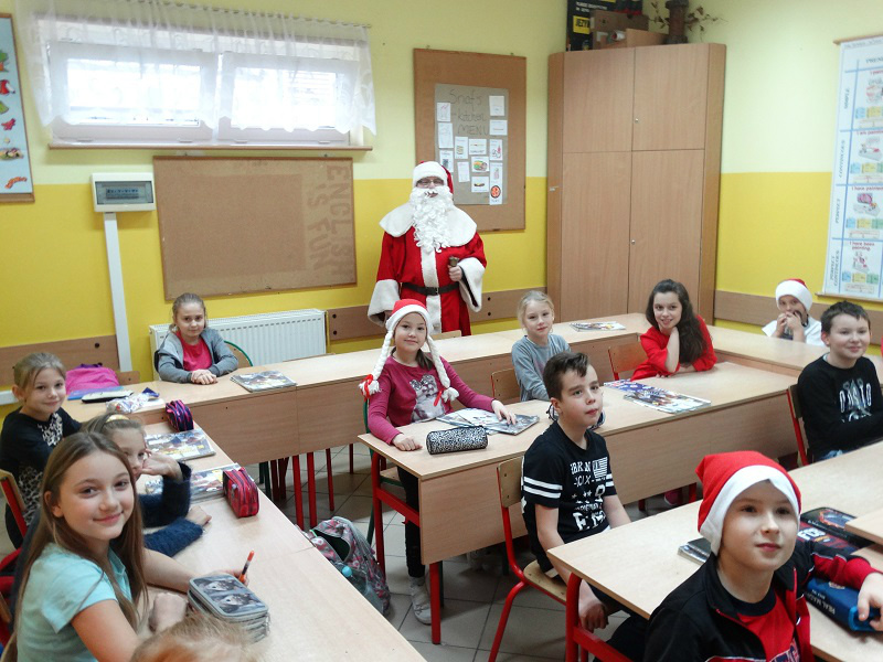Smak i aromat prawie identyczny z naturalnym", które zwróciło naszą uwagę na odpowiednie przygotowanie się do obchodów Świąt Bożego Narodzenia. Po występie odwiedził nas Św. Mikołaj, który odwiedził każdą klasę a Śnieżynki rozdały wszystkim słodkości.