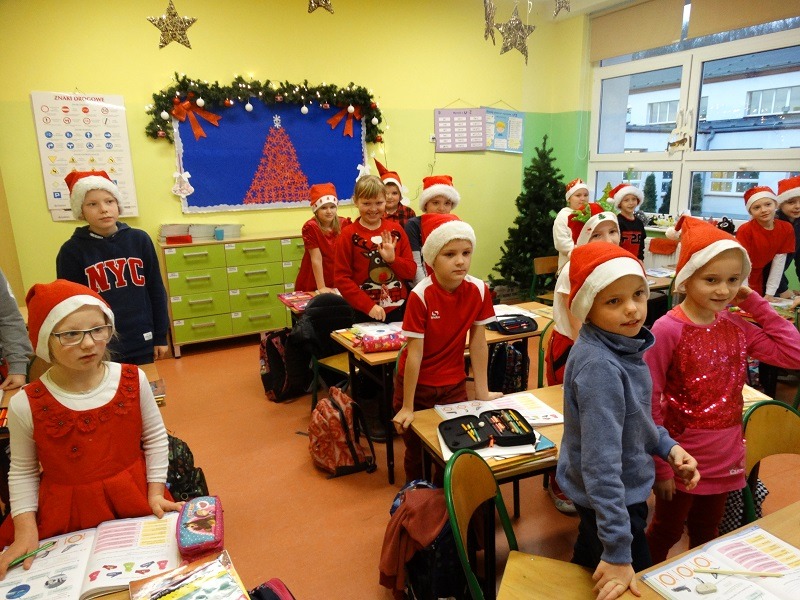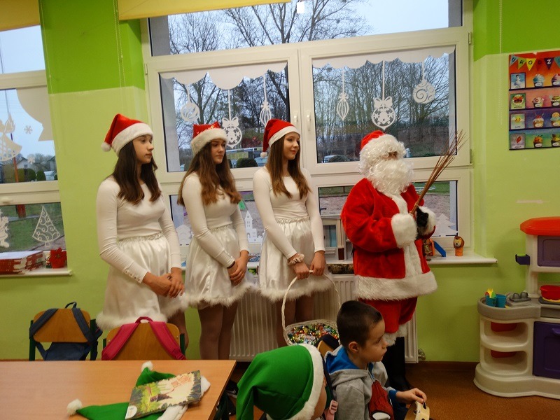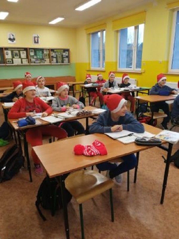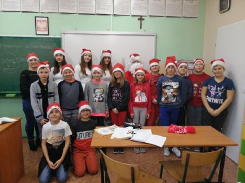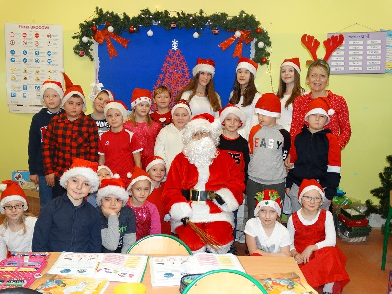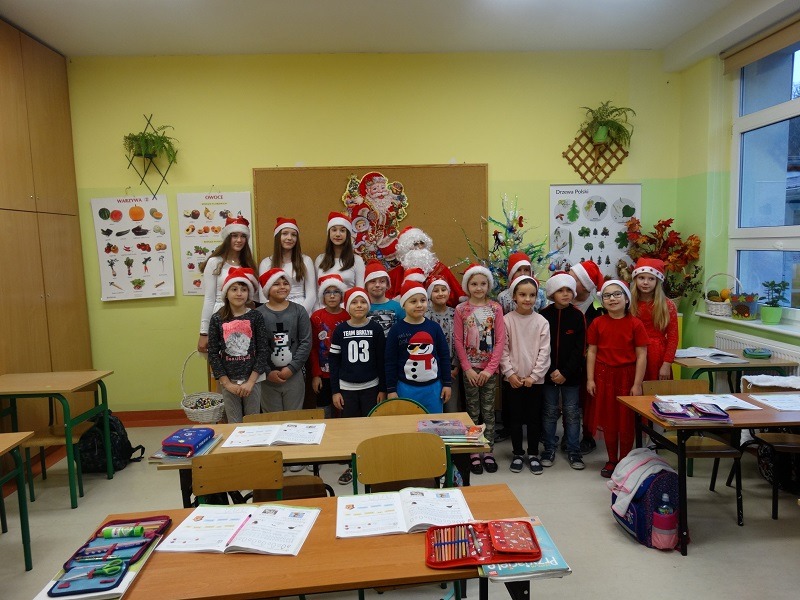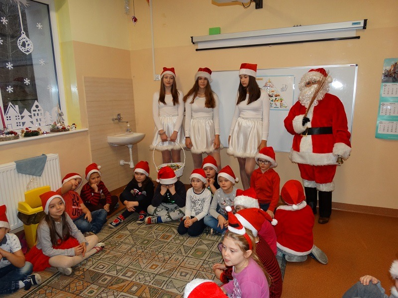 6.12.2019 r. z inicjatywy Samorządu Uczniowskiego od samego rana z każdej strony wyłaniali się uczniowie ubrani na czerwono, w mikołajkowych czapkach. Wielka radość nastała, kiedy naszą szkołę odwiedził Święty Mikołaj wraz ze Śnieżynkami. W każdej klasie Mikołaj rozdawał słodkości. Uczniowie w podzięce za prezenty recytowali wiersze i śpiewali kolędy. Dziękujemy Mikołajowi za odwiedzenie naszej szkoły.