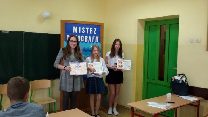 W dniu 25.05.2015 r. uczennice naszej szkoły : Zuzanna Klaman, Martyna kondratowicz i Agata Detlaf wzięły udział w Gminnym Konkursie Ortograficznym "Mistrz ortografii" . Wywalczyły zespołowo I miejsce w gminie. Wice-mistrzem ortografii naszej gminy została Martyna Kondratowicz. Do konkursu uczennice przygotowały p. M.Adamowicz i p. G. Król.