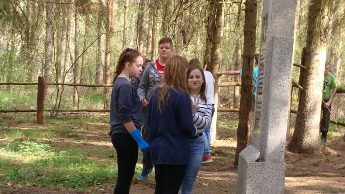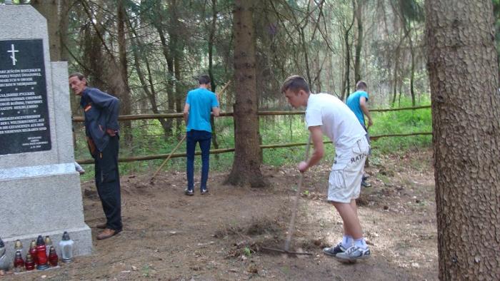 cmentarz jeńców rosyjskich z czasów I wojny światowej. Uczniowie wysłuchali informacji o historii jeńców, sami też podzielili się swoimi wiadomościami o cmentarzu. Następnie współnie posprzątali teren cmentarza.