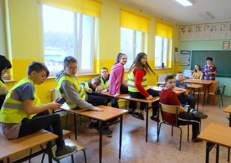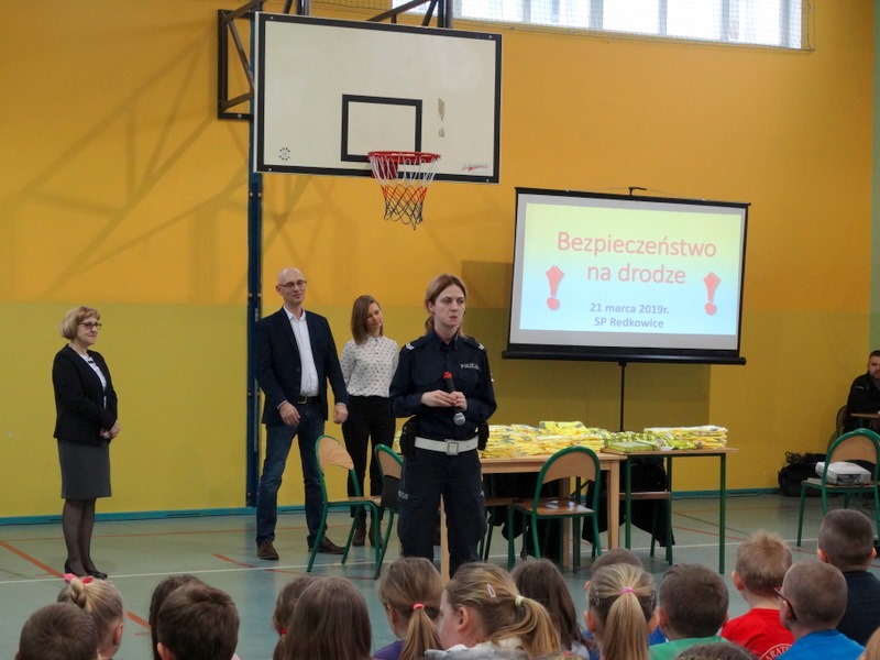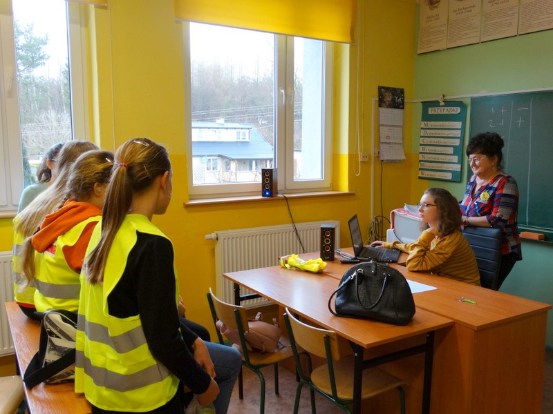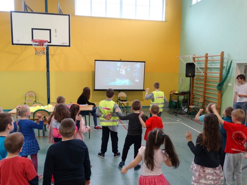 Dzień rozpoczęło spotkanie z funkcjonariuszami Policji, którzy przypomnieli zasady bezpieczeństwa poruszania się po drogach. Uczniom szkoły wręczono koszulki i odblaski ratujące życie na drogach ufundowane przez firmę Sondex (obowiązkowe poza miastem po zmroku).