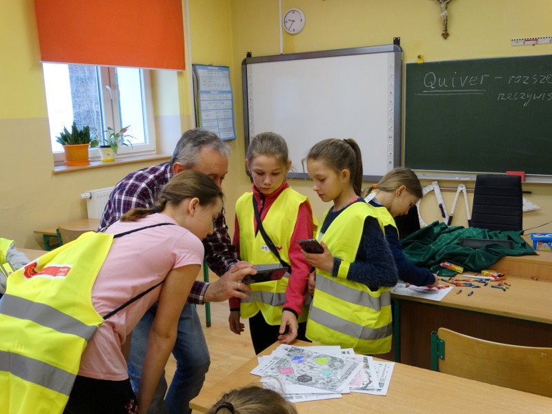 Na terenie szkoły zaliczaliśmy punkty, w których uczniowie mieli możliwość zapoznania się z urządzeniami i wiedzą z różnych dziedzin techniki. Urządzenia wykorzystane były w zabawach i sprawdzianach wiedzy ze znajomości techniki: