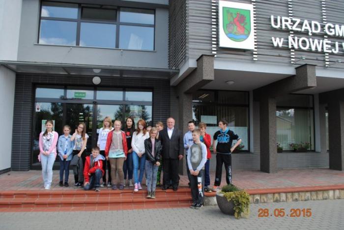 28 maja 2015 r uczniowie klasy VI spotkali się w urzędzie gminy z Wójtem Gminy Nowa Wieś Lęborska Ryszardem Wittke. Pan Wójt opowiedział młodzieży o swojej pracy. Ze strony słuchaczy padło wiele pytań dotyczących działalności Wójta i Rady Gminy na terenie naszych okolic. Pan Wójt bardzo chętnie odpowiedział na każde pytanie. Spotkanie zakończyło się wspólnym pamiątkowym zdjęciem.