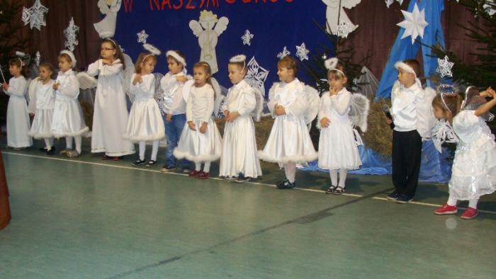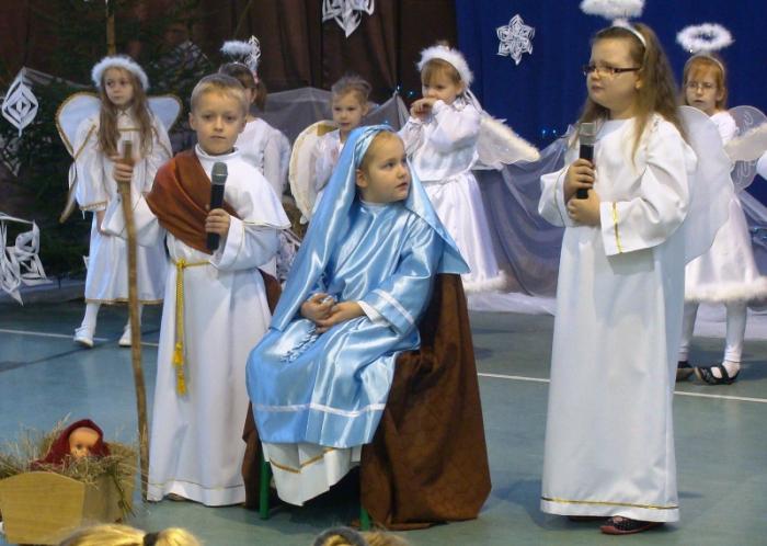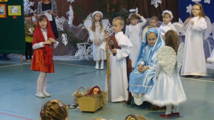 W dniu 19 grudnia 2013 r. uczniowie obejrzeli Przedstawienie Bożonarodzeniowe pt.”Bajkowe Jasełka”, które przygotowały dzieci z oddziałów przedszkolnych. Dzieci wcieliły się w role Maryi, Józefa, Aniołów, ale wystąpił także Pinokio, Dziewczynka z zapałkami, Jaś i Małgosia, Smerfetka, Pszczółka Maja, Czerwony Kapturek, rybak, Calineczka oraz Kopciuszek. Bardzo dziękujemy przedszkolaczkom za wprowadzenie nas w świąteczny nastrój.