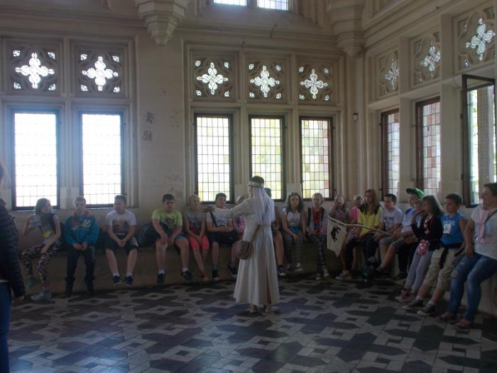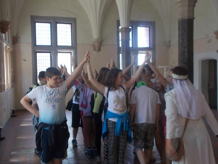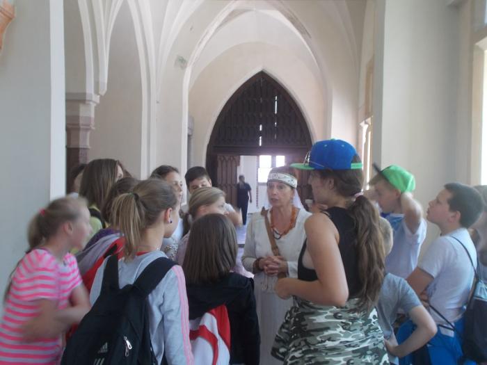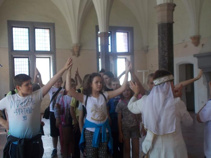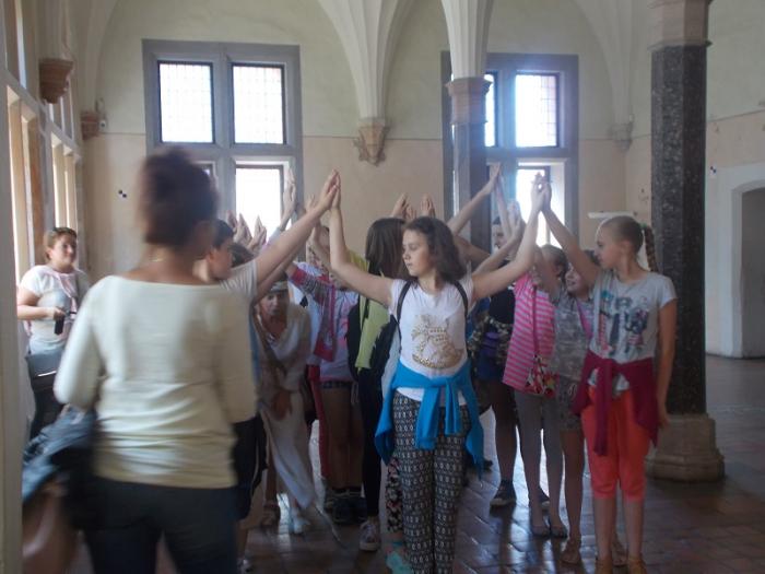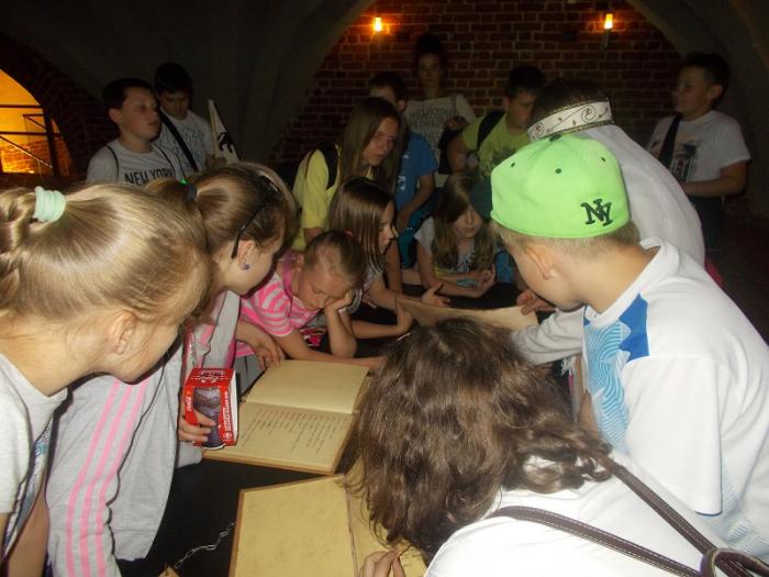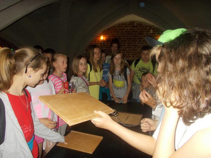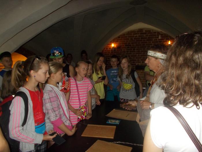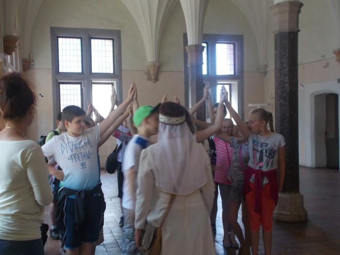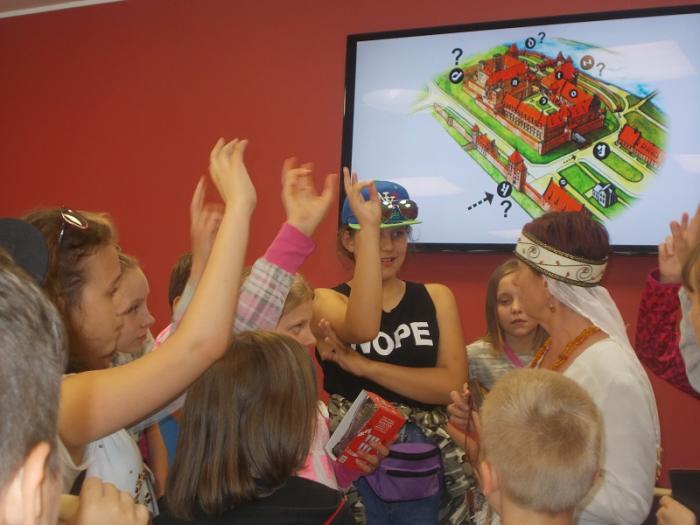 Uczniowie brali udział w programie "Szlakiem Zamkowych Tajemnic", poszukiwali liter ukrytych w różnych zamkowych pomieszczeniach odgadując zagadki przewodnika. Efektem tych poszukiwań było odgadnięcie hasła i "wizyta" u Wielkiego Mistrza Krzyżackiego.