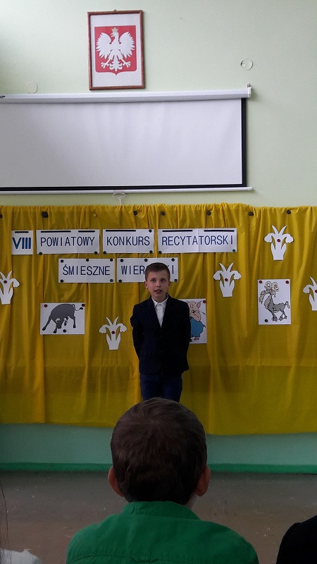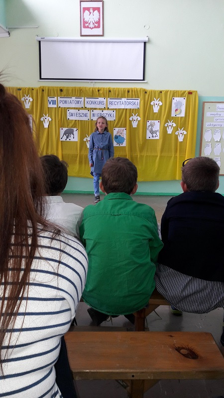 26 kwietnia 2018 r. odbył się VIII Powiatowy Konkurs Recytatorski dla klas III. Naszą szkołę reprezentowała Zofia Pobłocka z wierszem "Ziółko" M. Terlikowskiej oraz Franciszek Zeitz z wierszem "Pims,