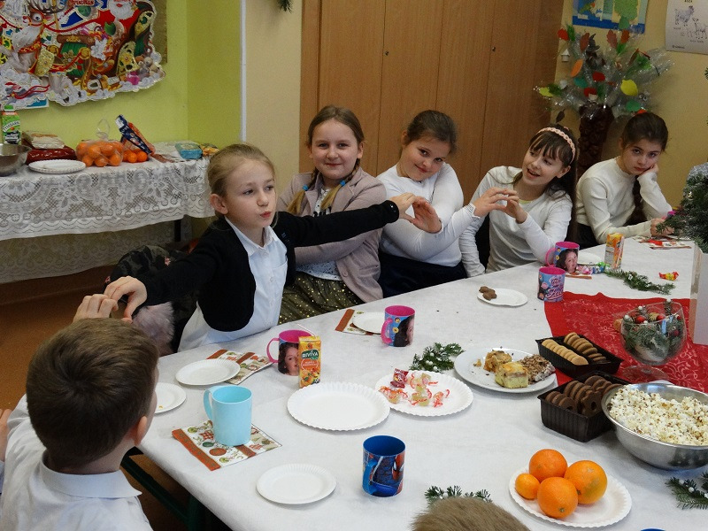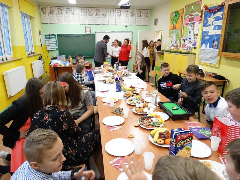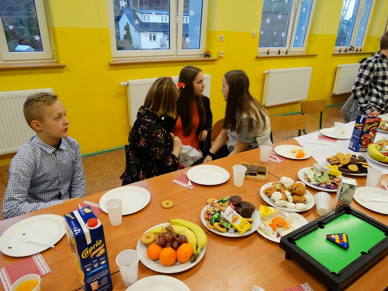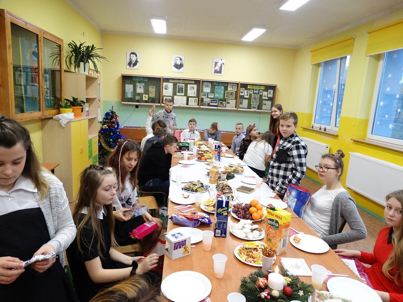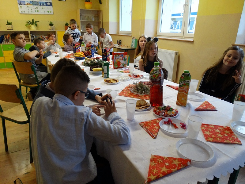Nasza szkoła pielęgnuje tradycje bożonarodzeniowe. 20.12.2019 r dzięki pomocy rodziców uczniów we wszystkich klasach przygotowano uroczysty poczęstunek. Wspólne świętowanie rozpoczęła