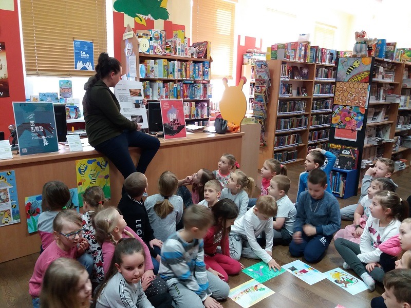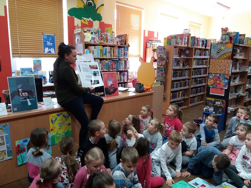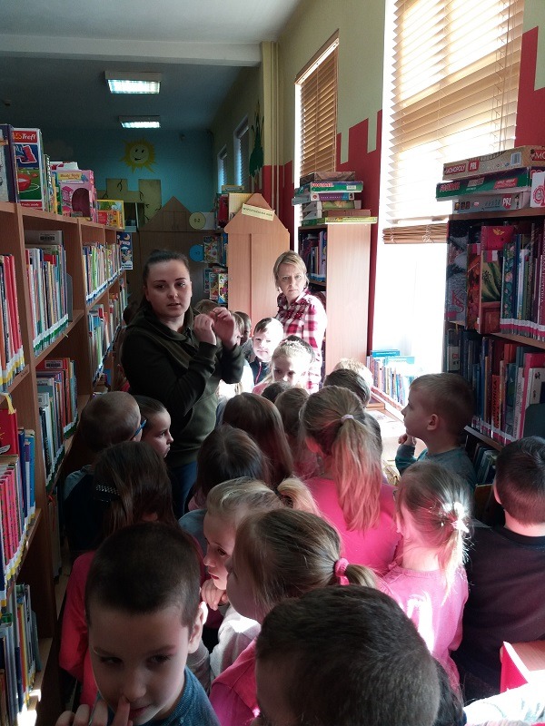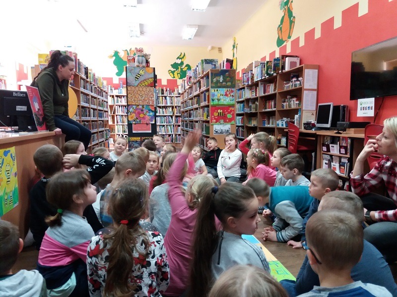 11 marca 2019 r. dzieci z oddziału przedszkolnego 6 - latków oraz uczniowie klasy I SP wrazz opiekunami p.Anną Wiśniewską, p. Anną Żółtowską, p. Wiolettą Wilkosz, p. Magdaleną Downar - Zapolską odwiedzili Miejską Bibliotekę Publiczną w Lęborku. Uczniowie zwiedzili dział dla dorosłych oraz dział dla dzieci i młodzieży. Podczas zajęć bibliotecznych dzieci przypomniały sobie sylwetkę Juliana Tuwima oraz bawiły się jego twórczością dla dzieci.