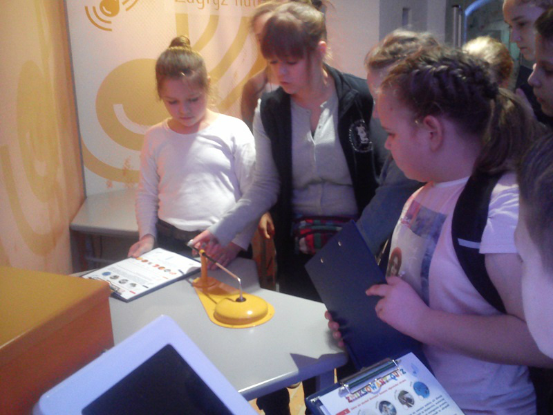 Pierwsza z tych wystaw została wypożyczona z podobnego Centrum z Łodzi i zdradzała sekrety dźwięku, pokazywała co z nim można zrobić. Druga z wystaw była podzielona na dwie pracownie : Pracownię Energii i Pracownię REenergii.W przestrzeni pierwszej pracowni każde ze stanowisk prezentowało określony rodzaj energii lub przemianę jednej formy energii w inną. W ogromnym akwarium można było wywołać tsunami, obok zaobserwować ile energii zużywa człowiek w swojej działalności, mogli wsiąść do symulatora jazdy samochodem a także dowiedzieć się jak działa światłowód.Pracownia REenergii to interaktywna przestrzeń z ultranowoczesnymi stanowiskami przedstawiającymi nie tylko zjawiska związane z energią odnawialną, ale także wszystko co dotyczy gospodarki odpadami, np.: drugie życie śmiecia, wprawianie w ruch samolotu za pomocą wiązki światła czy zanieczyszczenie naszej planety widziane z Kosmosu.Uczniowie mogli dowiedzieć się ile lat mają ich uszy, jak wygląda bateria nad rentgenem, czym jest ziemski piec i wiele innych ciekawych rzeczy. W drodze powrotnej nie zabrakło popularnego wśród młodzieży McDonalda. Organizatorem wycieczki była wychowawczyni klasy IV pani Beata Strąk, opiekunami pani Ewa Chmielewska oraz pan Jacek Gidlewski.