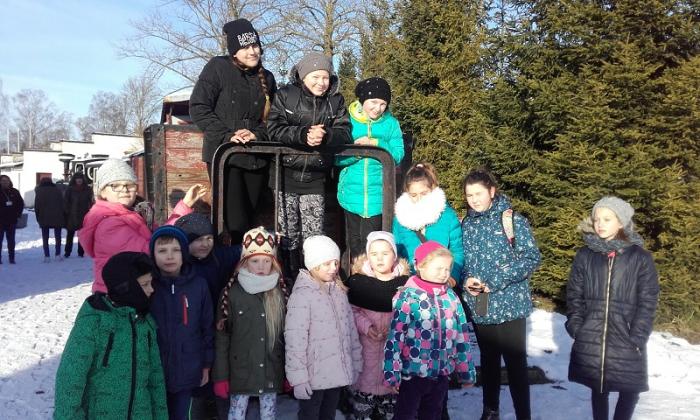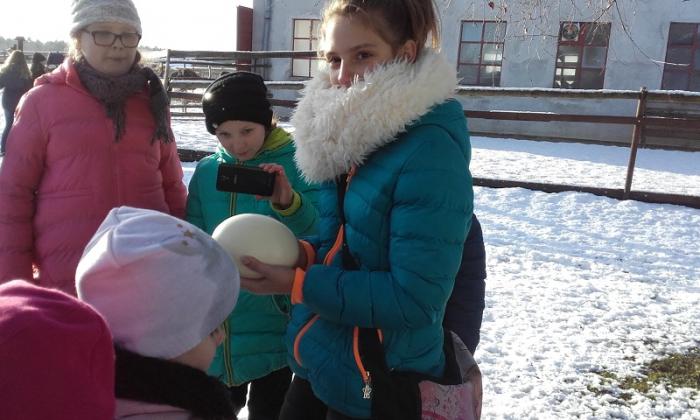 afrykańskie w gospodarstwie Agro Struś w Garczynie. Dowiedzieli się rozmaitych wiadomości o pochodzeniu, środowisku życia i zachowaniu tych ptaków. Mogli wziąć w ręce strusie jajo. Mieli okazję podziwiać rzeczy i pamiątki, które można wykonać ze skorupy jaja. W drodze powrotnej wstąpili także do Muzeum Hymnu Narodowego w Będominie, gdzie wysłuchali wiadomości o genezie powstania Hymnu Polskiego i jego autorze Józefie Wybickim. Miłym zaskoczeniem była dla dzieci zima, która w pełnej swej krasie panuje na Kaszubach i w doskonałych humorach wróciły do domu.