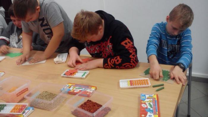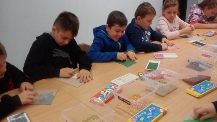 Uczniowie dowiedzieli się jaka jest etymologia powstawania nazw ptaków i sami próbowali takie nazwy utworzyć. W drugiej części czwartoklasiści i piątoklasiści samodzielnie komponowali prace plastyczne używając plasteliny i różnego rodzaju nasion.
