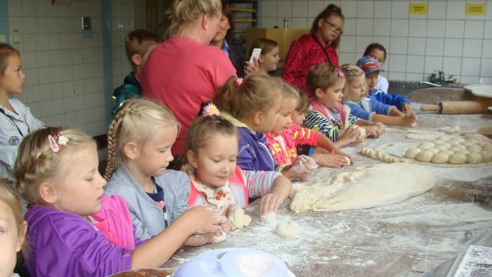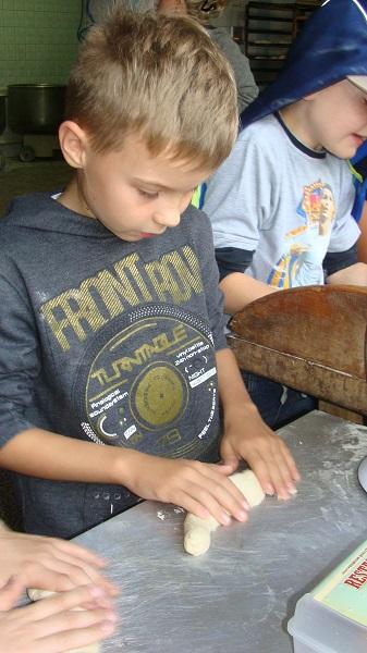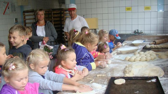piekarni Pana Mariana Darżnika w Mostach. Dzieci miały okazję zapoznać się z procesem wypiekania pieczywa. Dużo radości sprawiło dzieciom wykonanie własnych bułeczek i rogali.