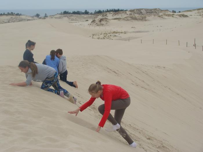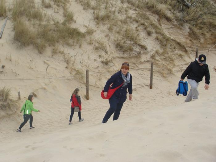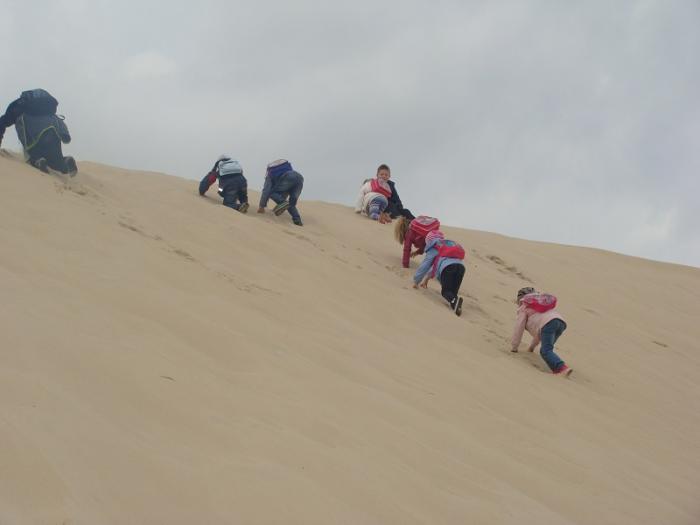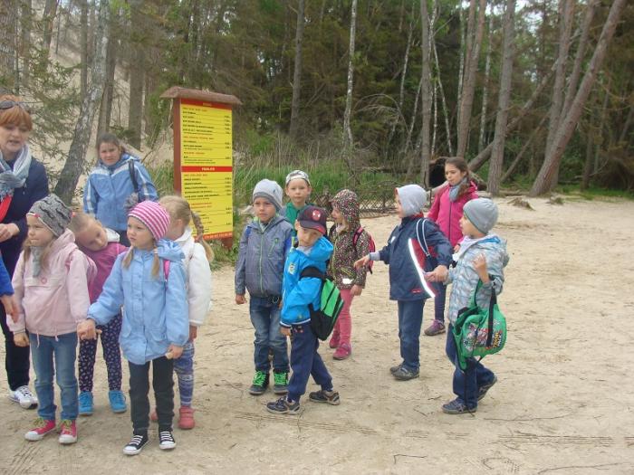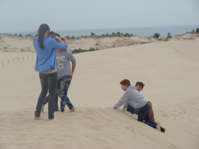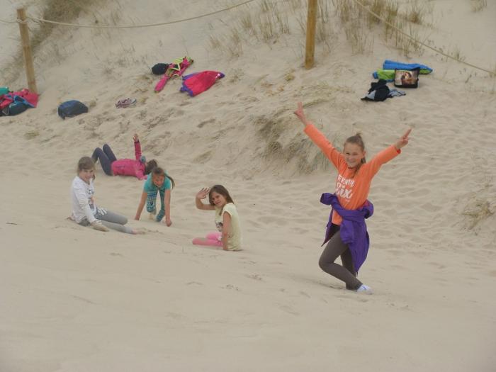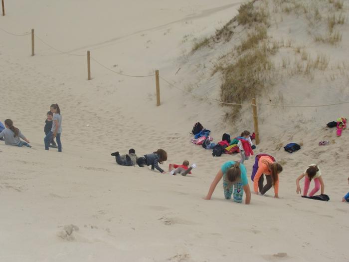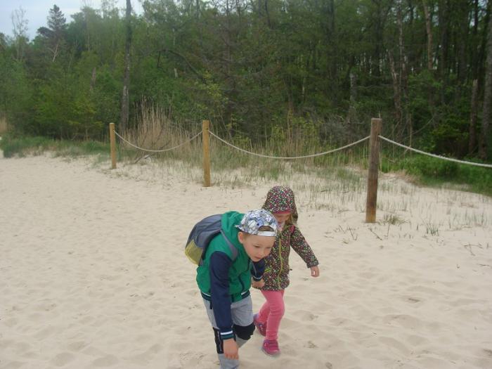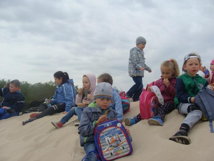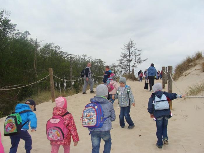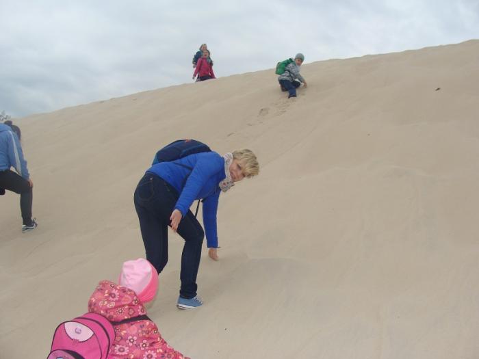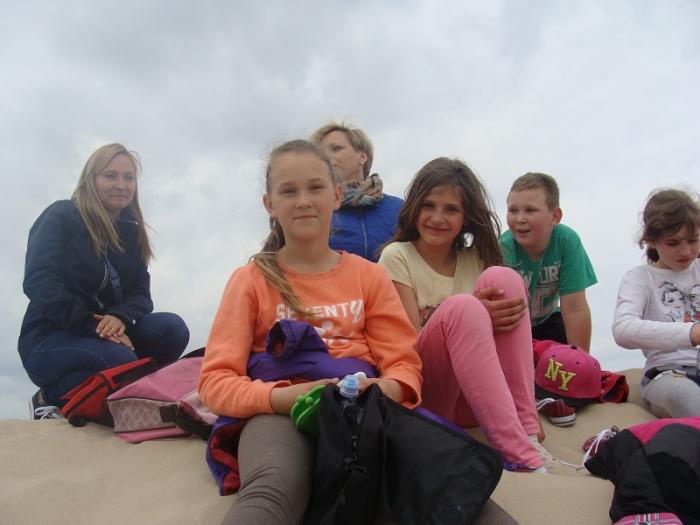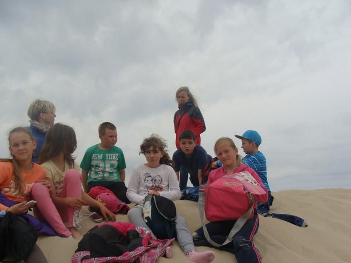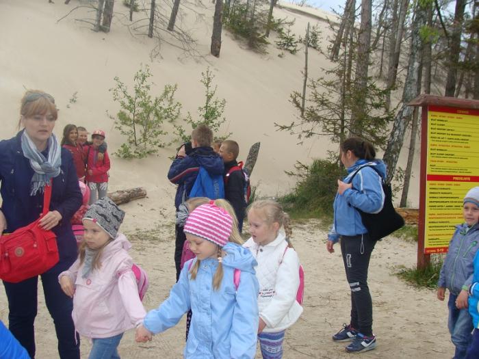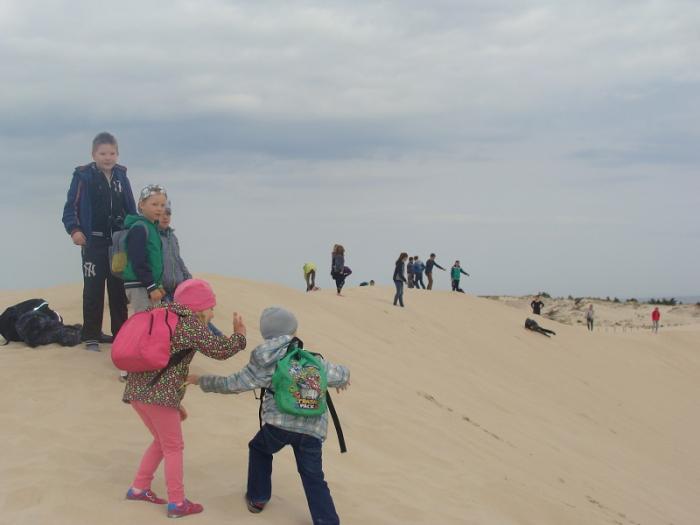 Największą atrakcją wycieczki była wspinaczka na ruchome wydmy. Ruchome piaski tworzą przepiękny pustynny krajobraz, unikatowy w Europie, zwany często polską Saharą. Zmęczeni ale weseli mali turyści udali się nad morze. W droge powrotna do autobusu odbyli wózkami elektrycznymi. Wszyscy wrócili z wycieczki bardzo zmęczeni ale zadowoleni