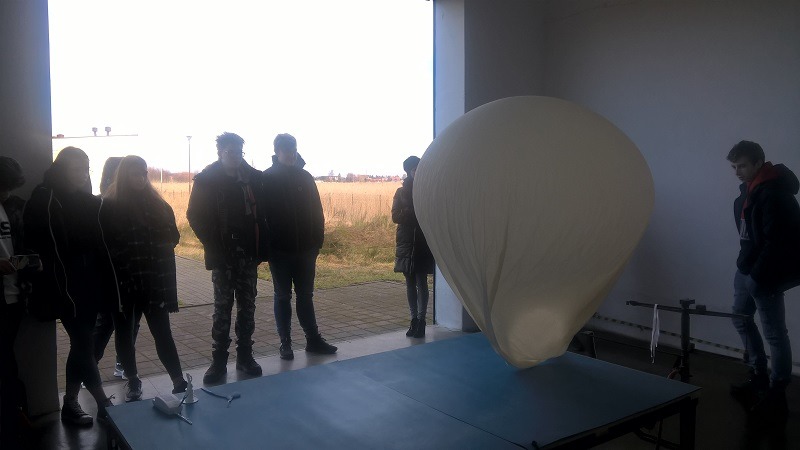 Na zakończenie klasa uczestniczyła w przygotowaniu do wypuszczenia balonu meteorologicznego a jeden z uczniów wypuścił go do atmosfery.