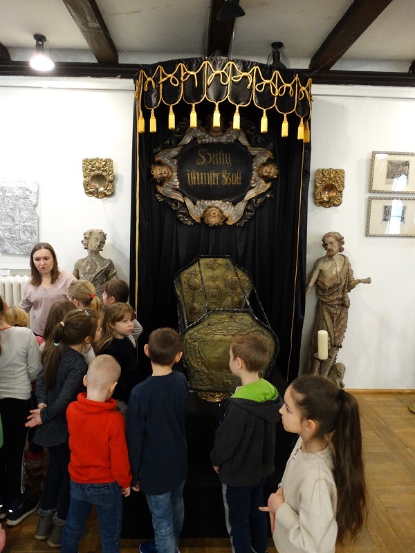19 lutego 2020 r. uczniowie klasy I oraz dzieci z oddziału przedszkolnego 6-latków wraz z opiekunami odwiedzili lęborskie Muzeum. Dzieci zapoznały się z historią miasta Lębork i jego okolic. Uczxniowie podziwiali dawne stroje i biżuterię, naczynia. Poznawali zwyczaje dawnych lęborczan.