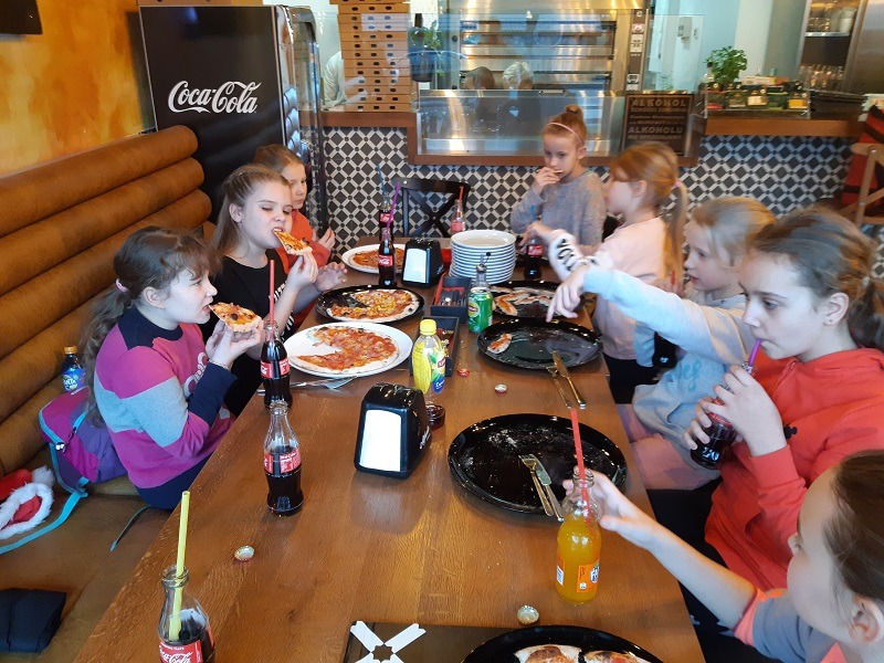 6 grudnia 2019 r. uczniowie klasy IV świętowali mikołjki w pizzerii "Pomidor" w Lęborku. Uczniowie mieli okazję pod okiem szefa kuchni