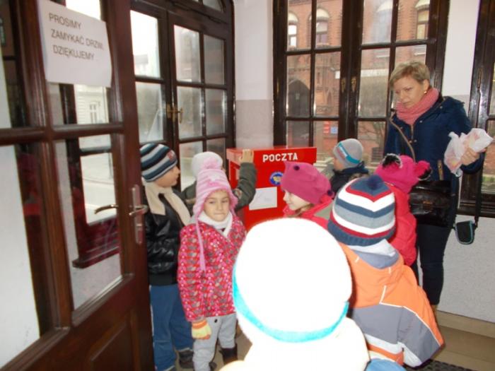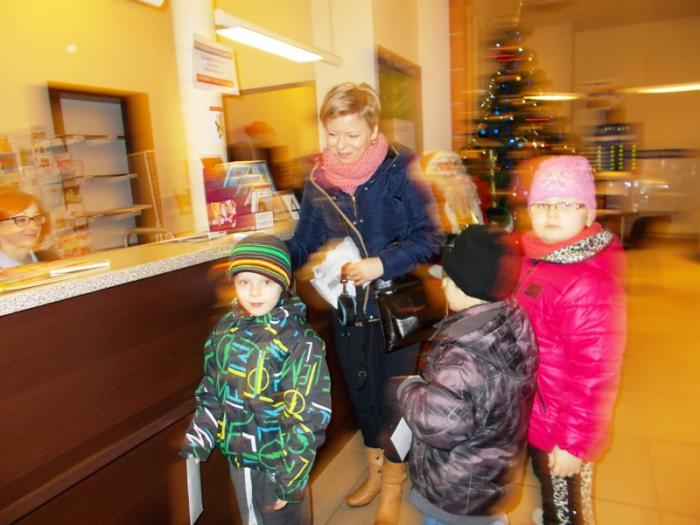 Dnia 19 grudnia uczniowie klasy II szkoły podstawowej i dzieci 6-cio letnie wraz z wychowawcami – panią Marią Renka i Anną Żółtowską pojechały do Lęborka aby poznać tajniki pracy na poczcie. Uczniowie uczyli się jak wysyłać kartki, które były zaadresowane do rodziców z życzeniami Bożonarodzeniowymi. Na zakończenie wizyty, uczniowie wręczyli kartkę świąteczną i złożyli życzenia wszystkim pracownikom Poczty Głównej w Lęborku.