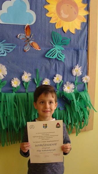 Wśród laureatów znalazł się uczeń klasy I SP w Redkowicach Filip Kołodziejczyk, który otrzymał wyróżnienie.