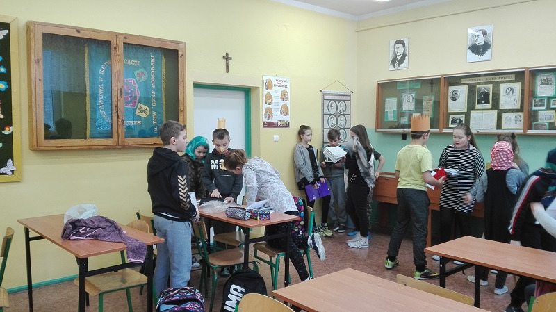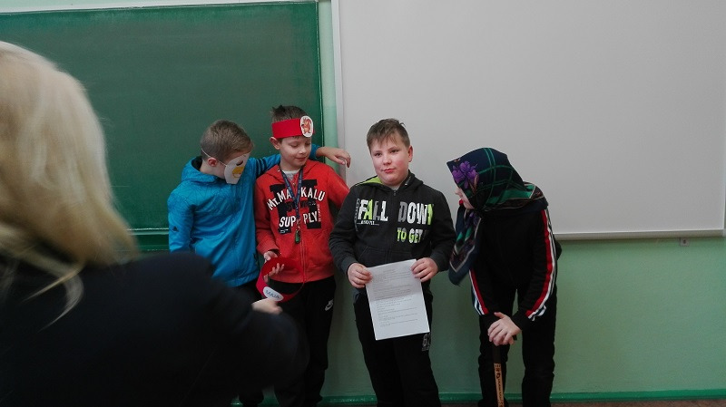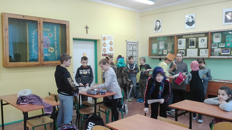 28 lutego 2018 r . klasa IV b wraz z wychowawczynią p. Magdaleną Adamowicz bawili się w teatr. Uczniowie na lekcji języka polskiego uczyli się w ten sposób terminów